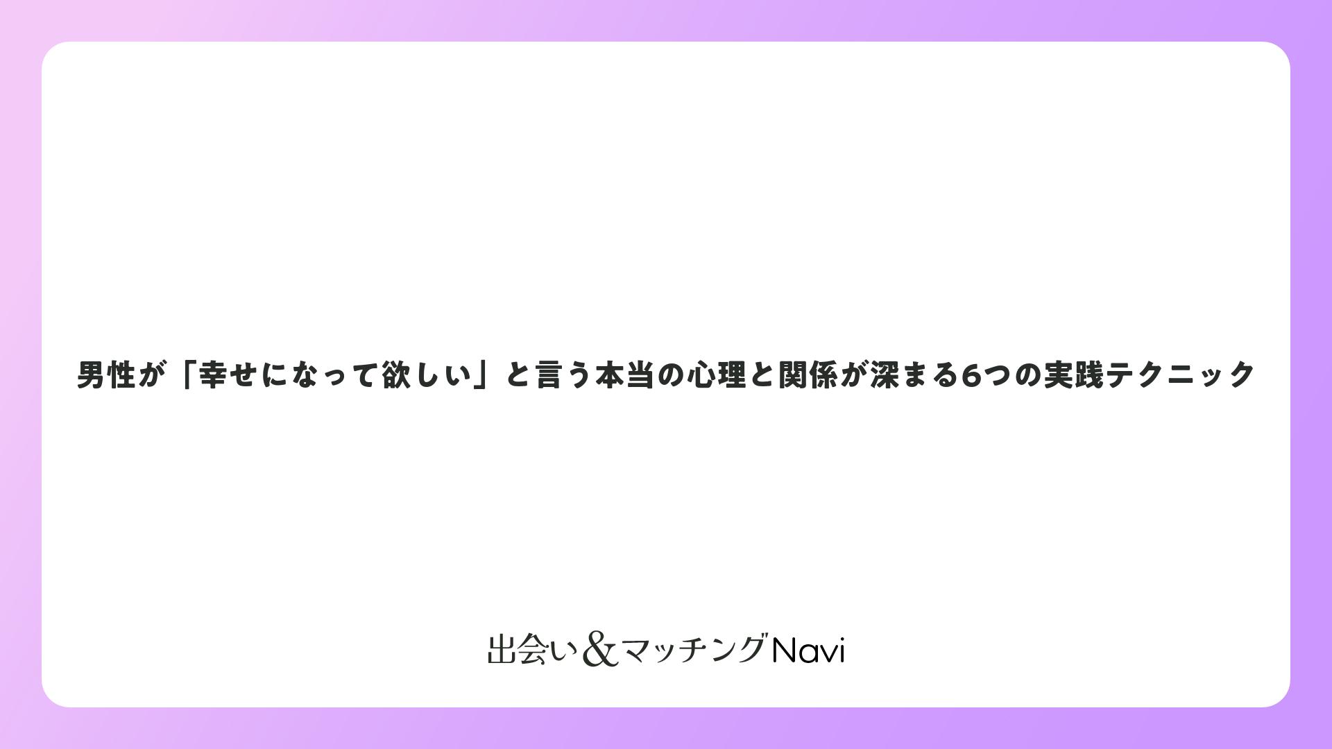 男性が「幸せになって欲しい」と言う本当の心理と関係が深まる6つの実践テクニックをまとめました