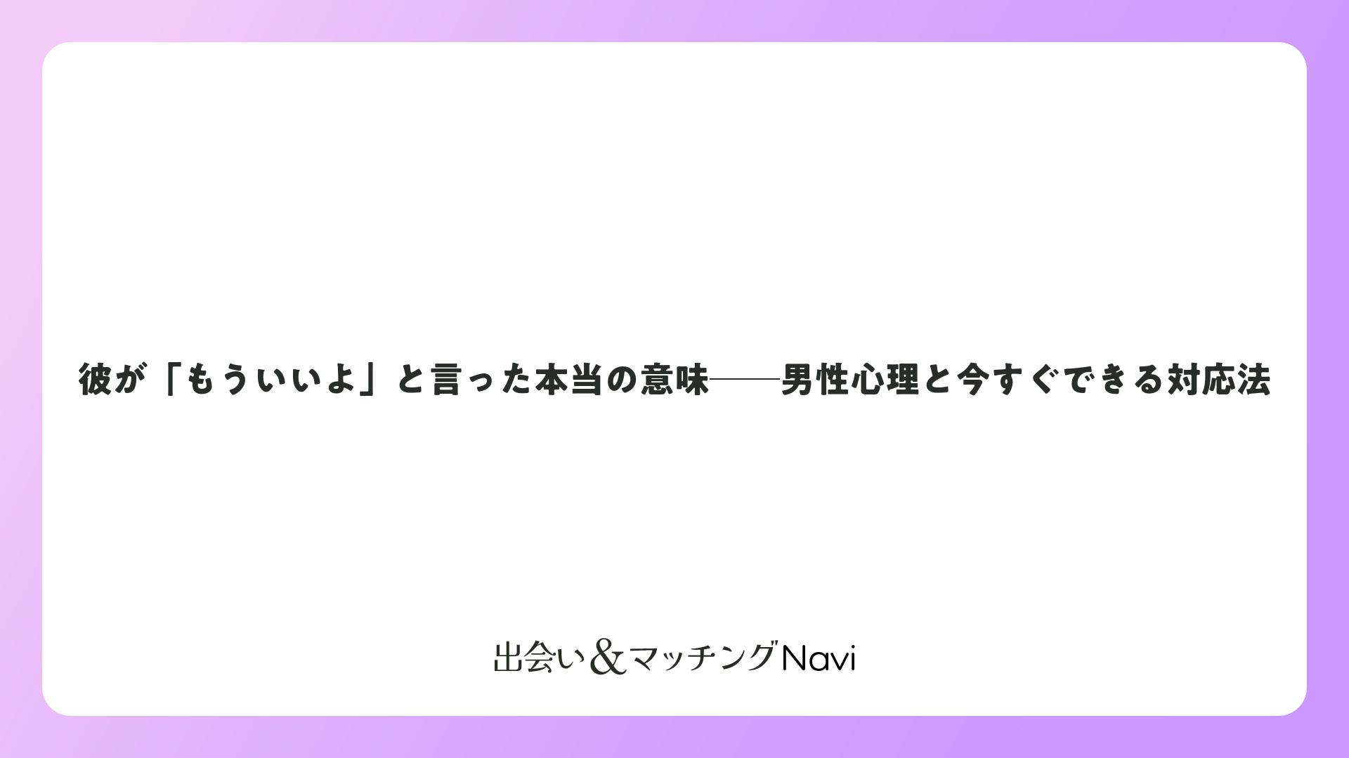 彼が「もういいよ」と言った本当の意味──男性心理と今すぐできる対応法をまとめました