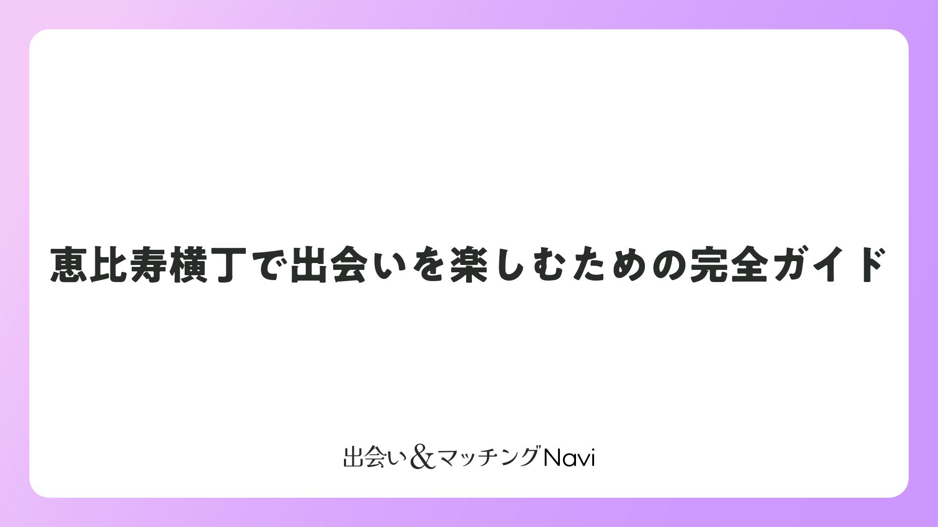 恵比寿横丁で出会いを楽しむための完全ガイドをまとめました