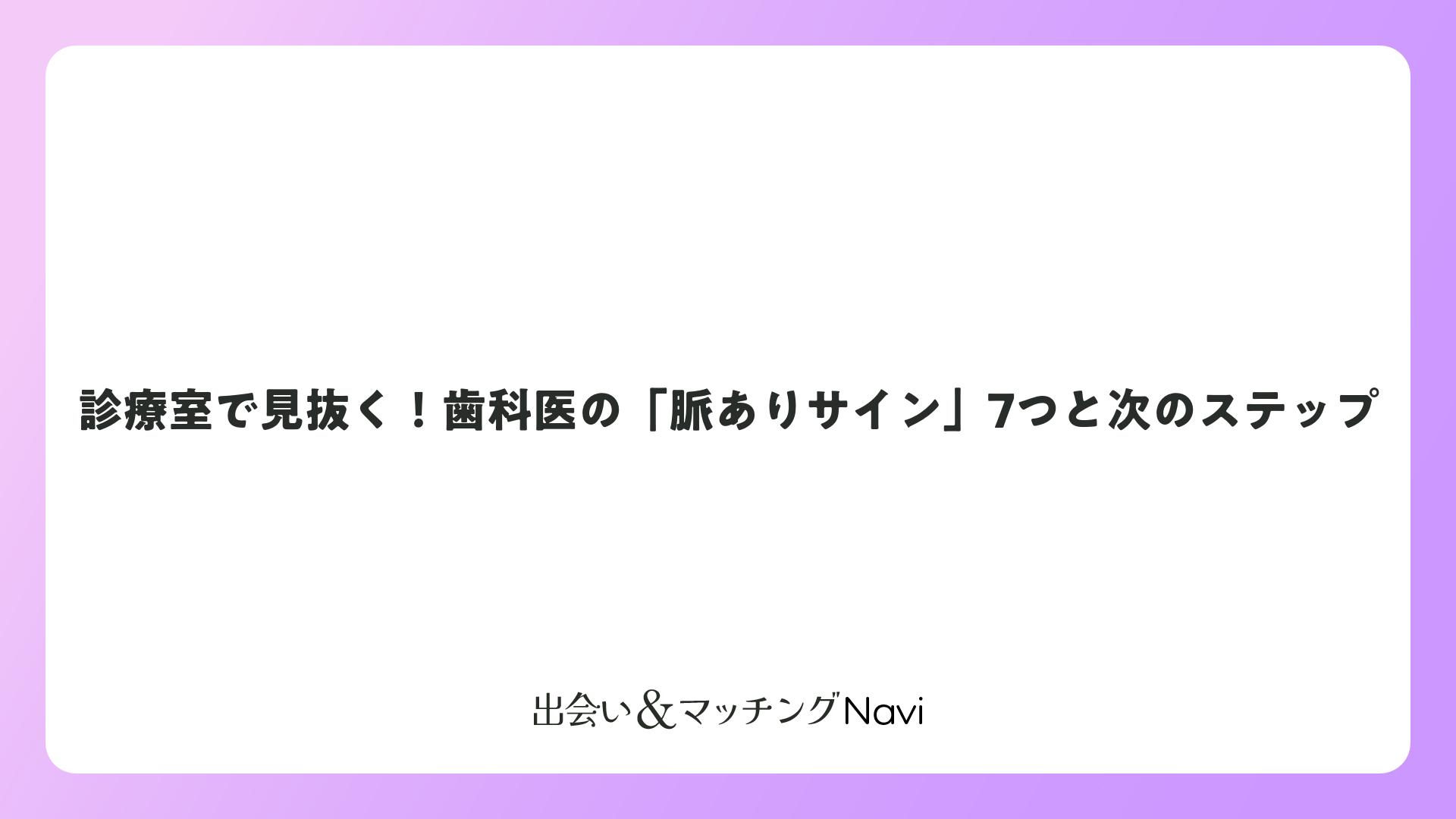 診療室で見抜く!歯科医の「脈ありサイン」7つと次のステップをまとめました