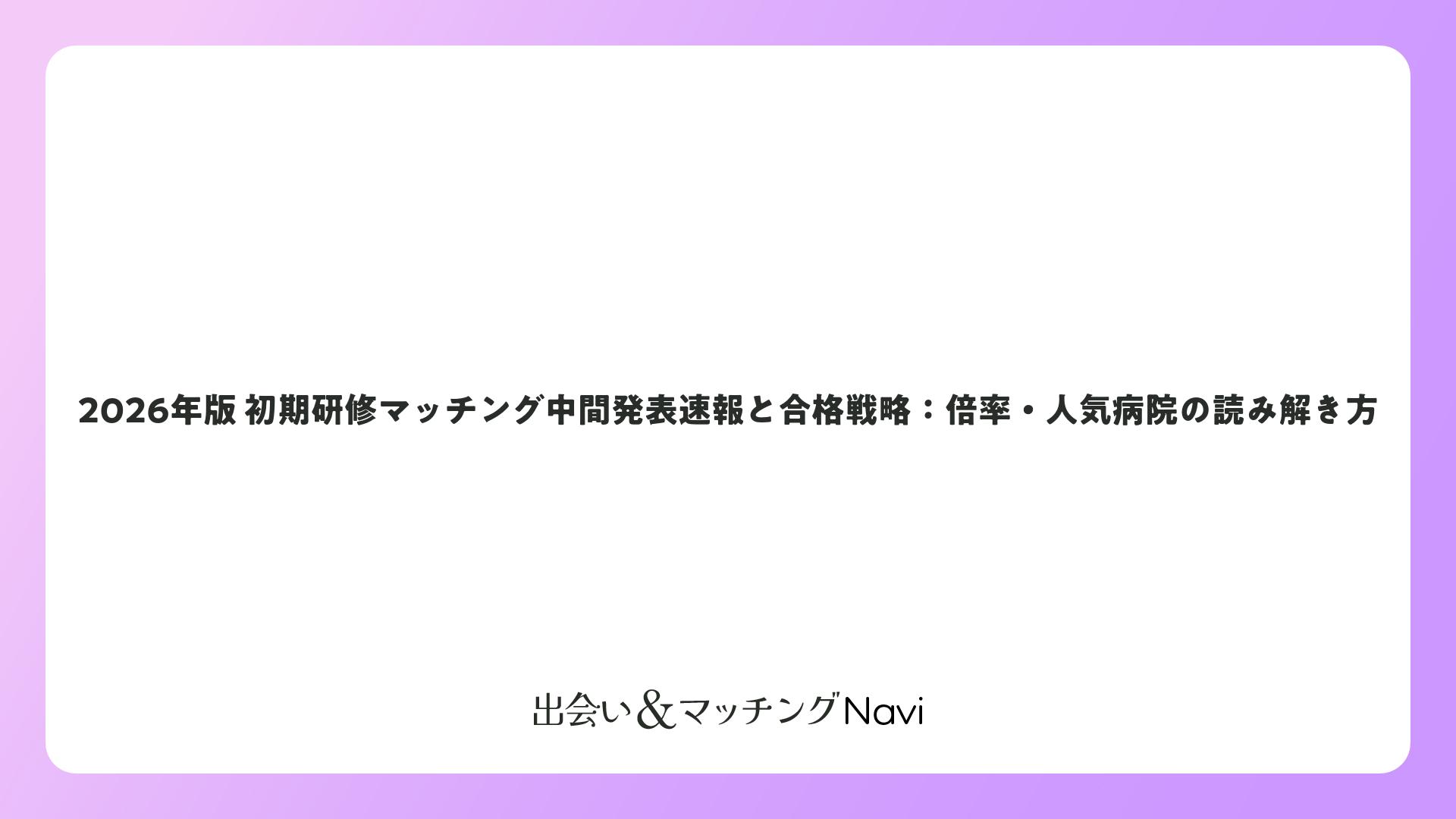 2026年版 初期研修マッチング中間発表速報と合格戦略:倍率・人気病院の読み解き方をまとめました