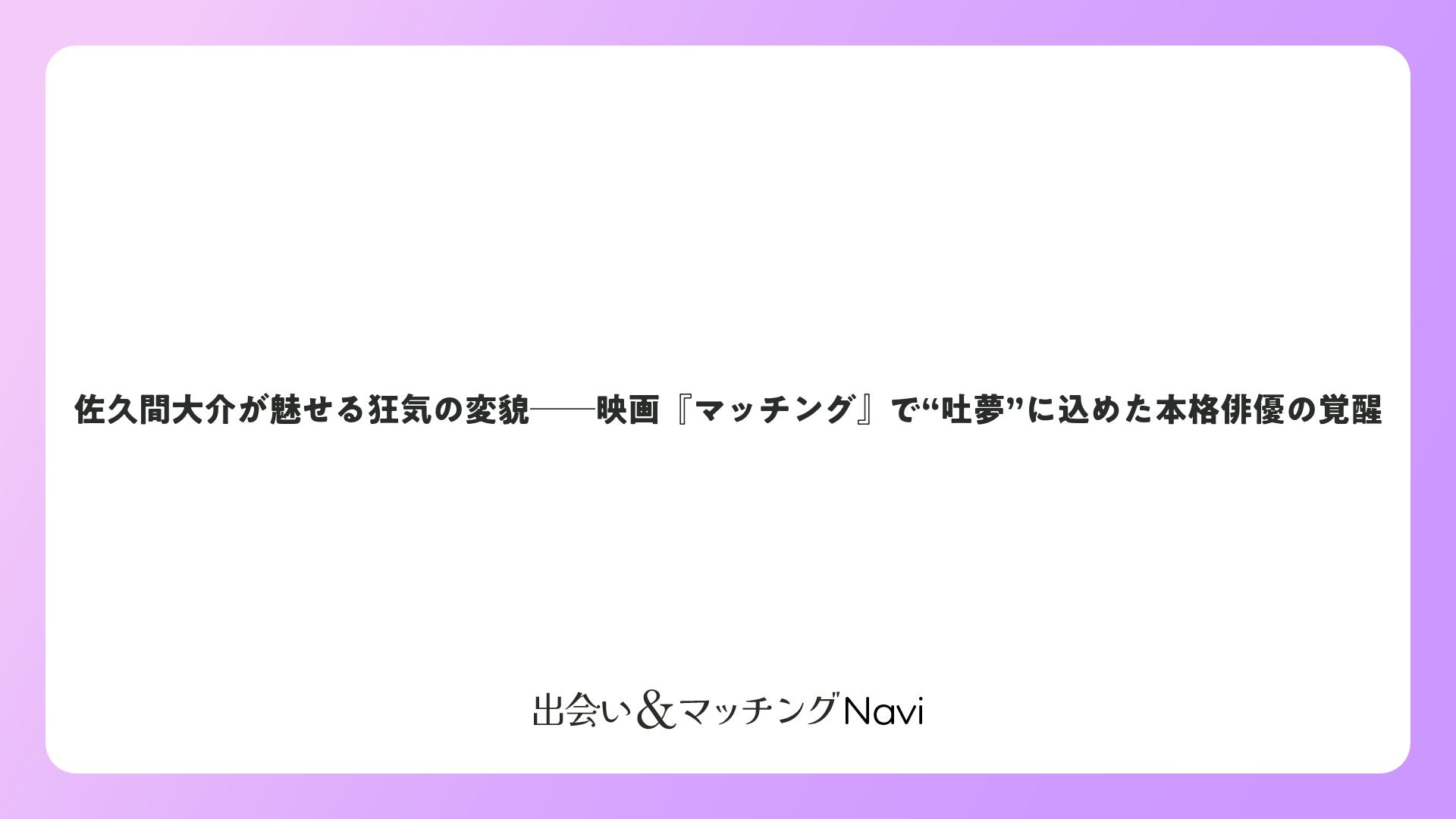 佐久間大介が魅せる狂気の変貌──映画『マッチング』で“吐夢”に込めた本格俳優の覚醒をまとめました