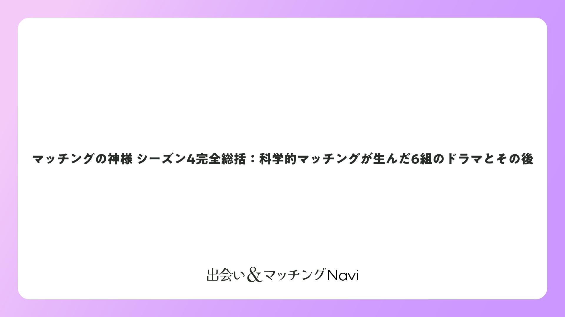 マッチングの神様 シーズン4完全総括:科学的マッチングが生んだ6組のドラマとその後