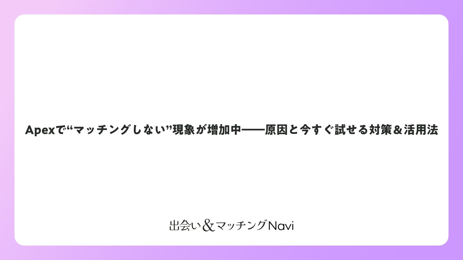 Apexで“マッチングしない”現象が増加中――原因と今すぐ試せる対策&活用法をまとめました