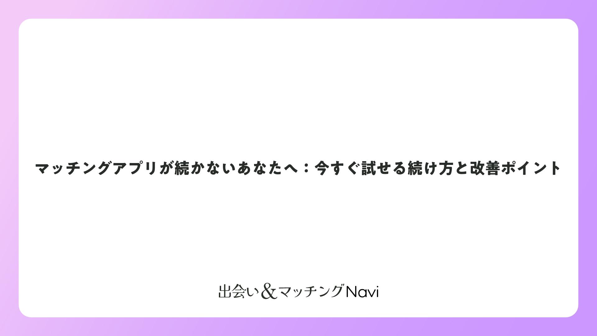 マッチングアプリが続かない悩みは、プロフィール改善、メッセージ術、安全対策、トラブル解決で克服できます。ポジティブに取り組めば、素敵な出会いが待っています。毎日の小さな習慣で変化を実感し、楽しく継続しましょう。