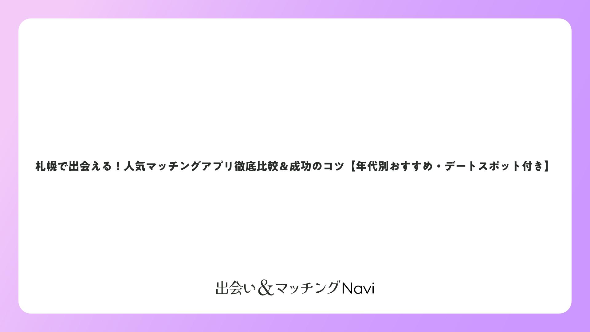 札幌で出会える!人気マッチングアプリ徹底比較&成功のコツ【年代別おすすめ・デートスポット付き】をまとめました