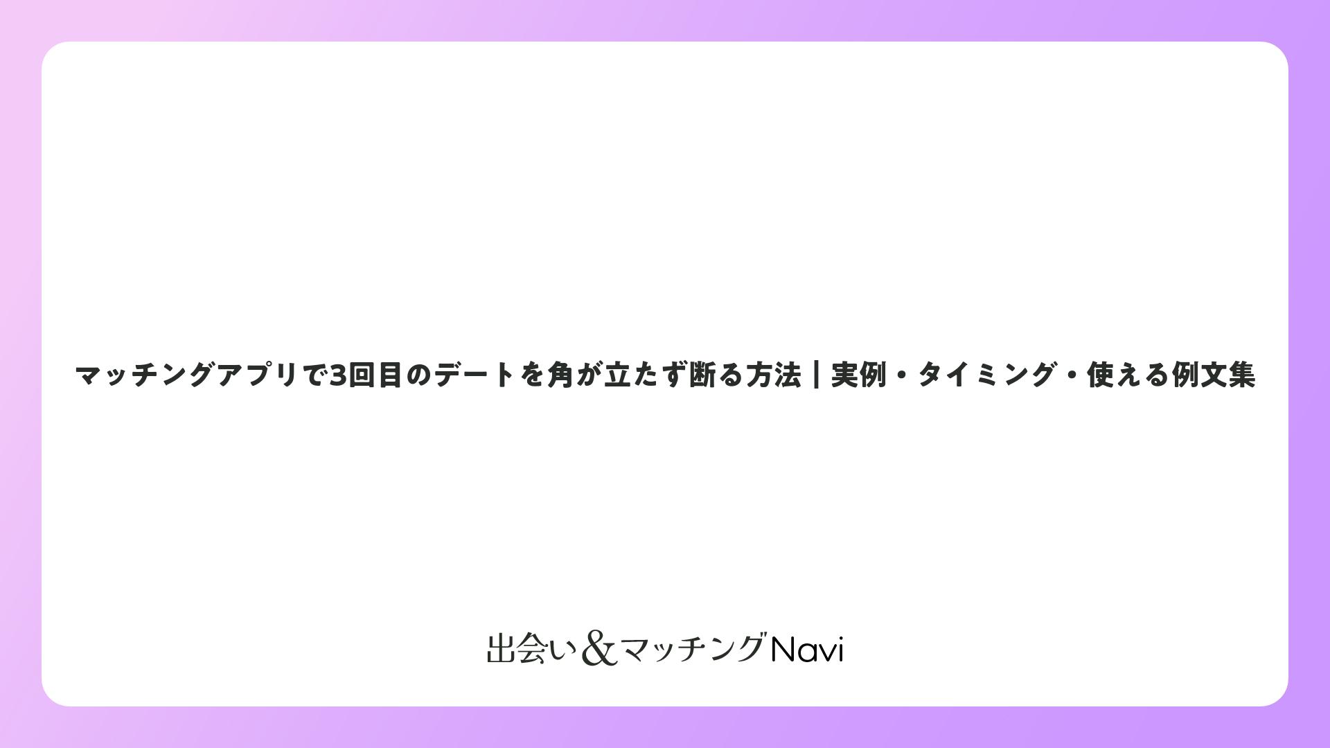 マッチングアプリで3回目のデートを断る際は、相手の気持ちを尊重しつつ、自分の心を大切にする誠実な対応が鍵です。この記事では、効果的な断り方や例文、マナー、タイミングを詳しく解説します。ポジティブな出会いを増やすための参考にしてください。
