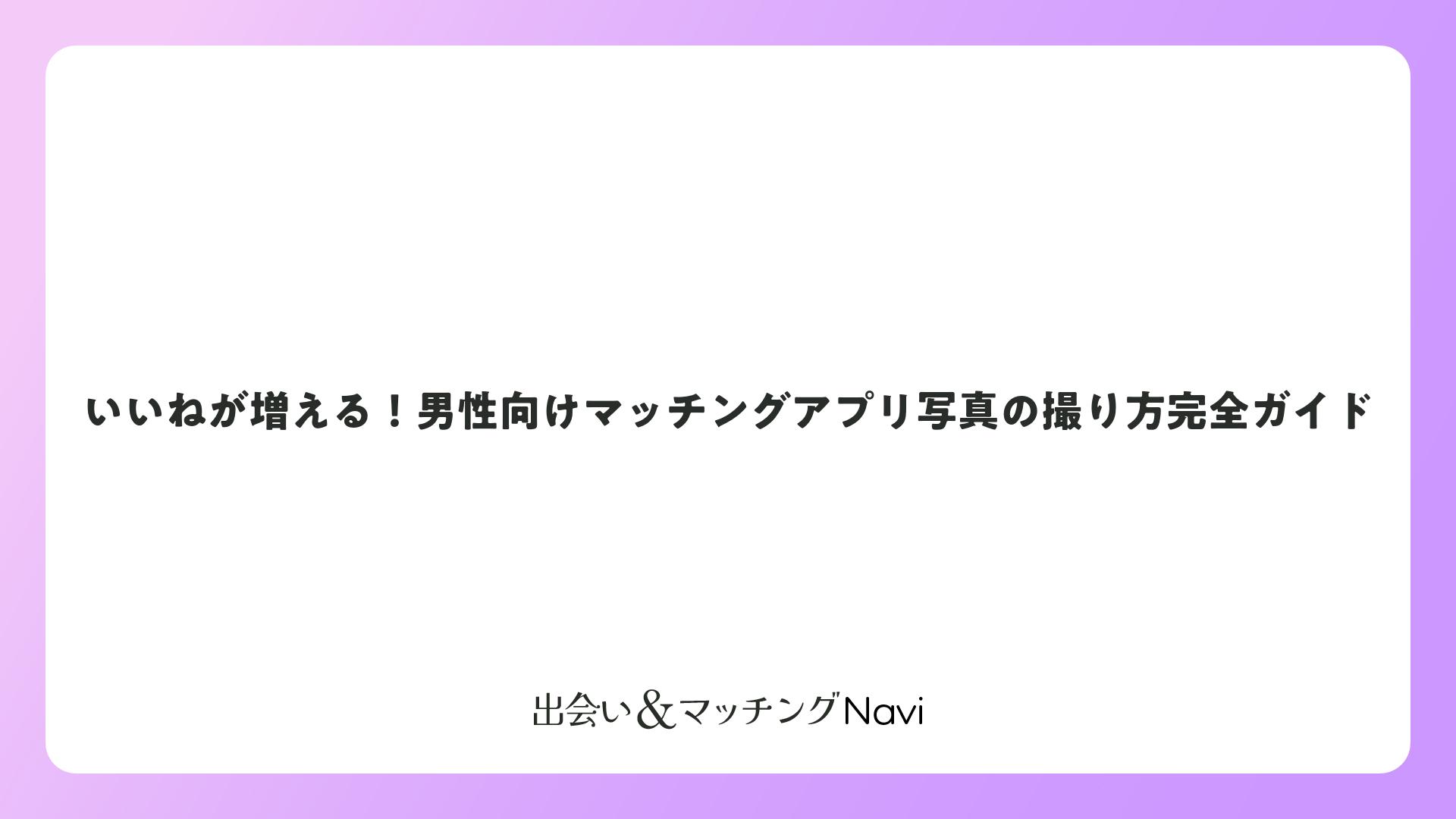 マッチングアプリで成功するためには、プロフィール写真が非常に重要です。男性の場合、第一印象を決める写真がマッチング率を大きく左右します。この記事では、男性向けに効果的な写真の撮り方を詳しく解説します。自然で魅力的な一枚を撮るコツを押さえれば、いいね!が増え、素敵な出会いに繋がります。
