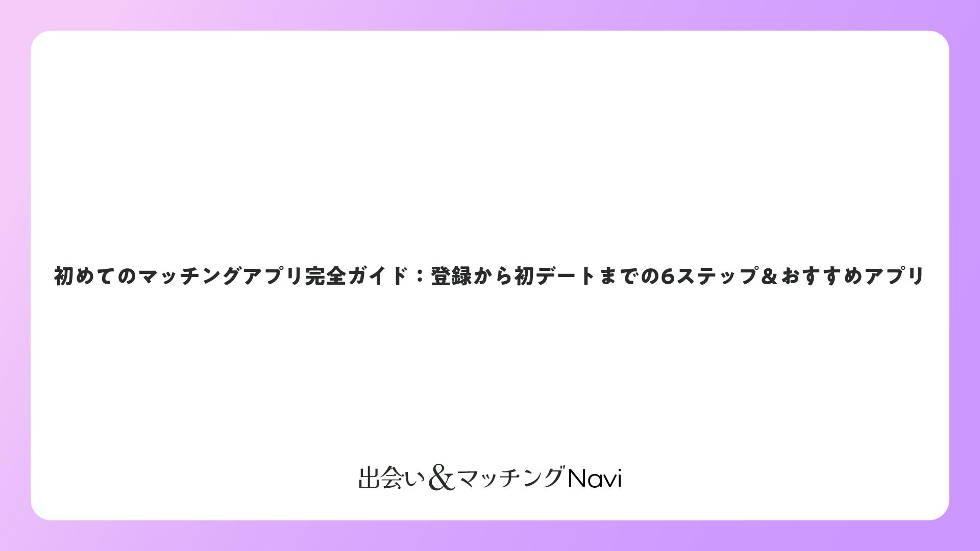 初めてのマッチングアプリ完全ガイド:登録から初デートまでの6ステップ&おすすめアプリ