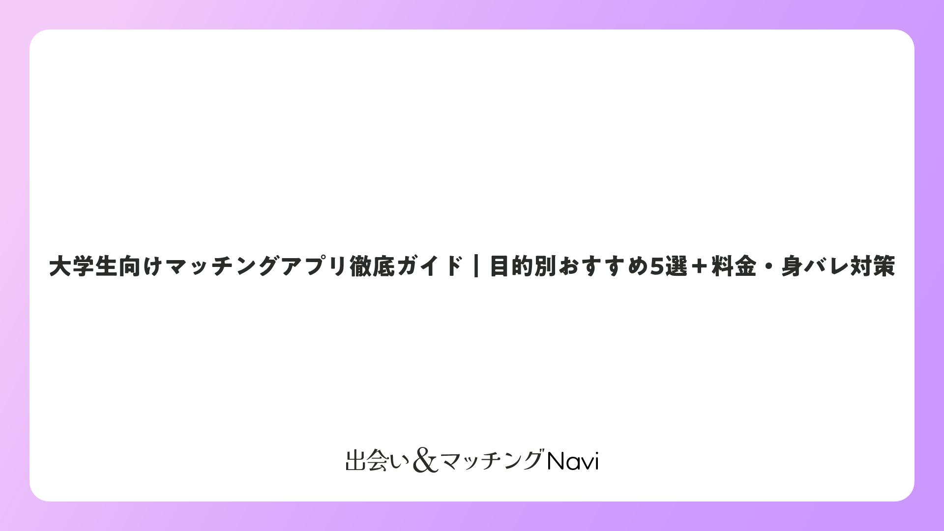大学生向けマッチングアプリ徹底ガイド|目的別おすすめ5選+料金・身バレ対策をまとめました