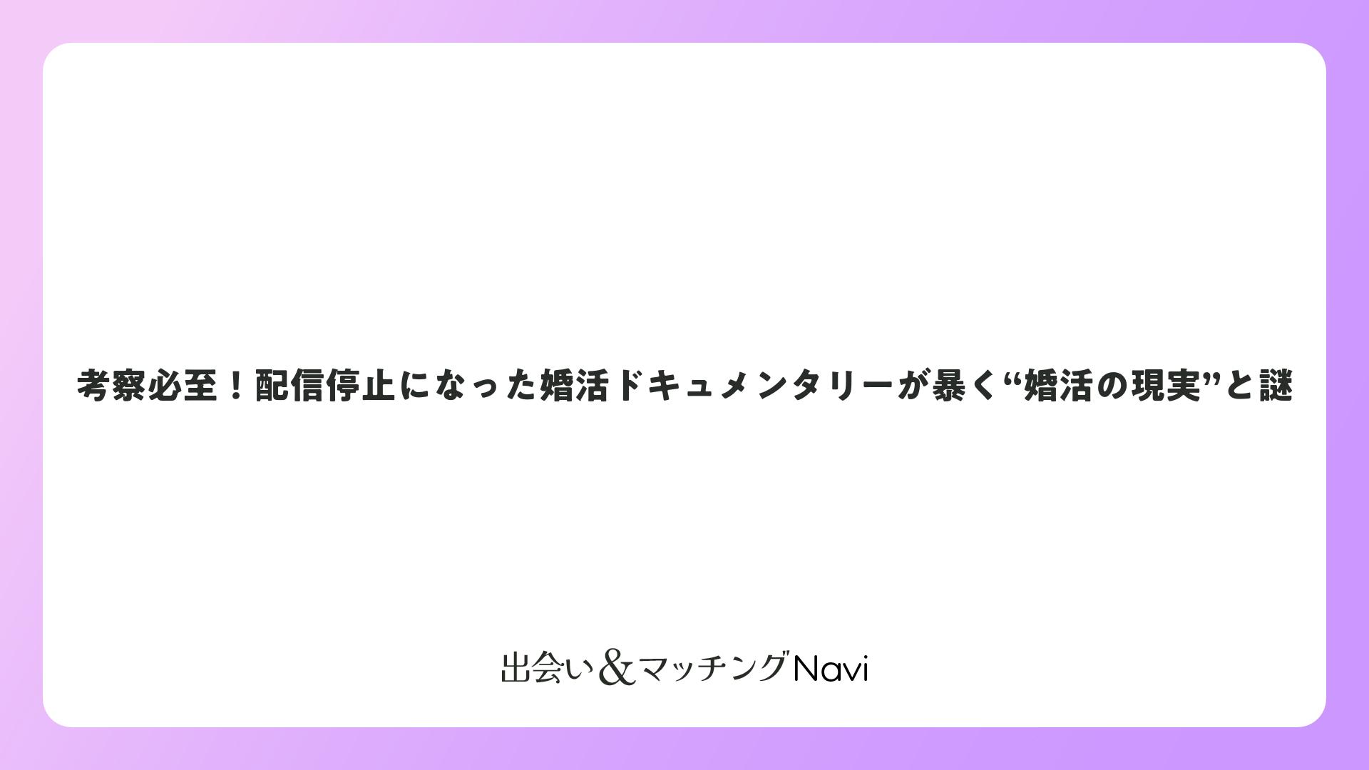 考察必至!配信停止になった婚活ドキュメンタリーが暴く“婚活の現実”と謎をまとめました