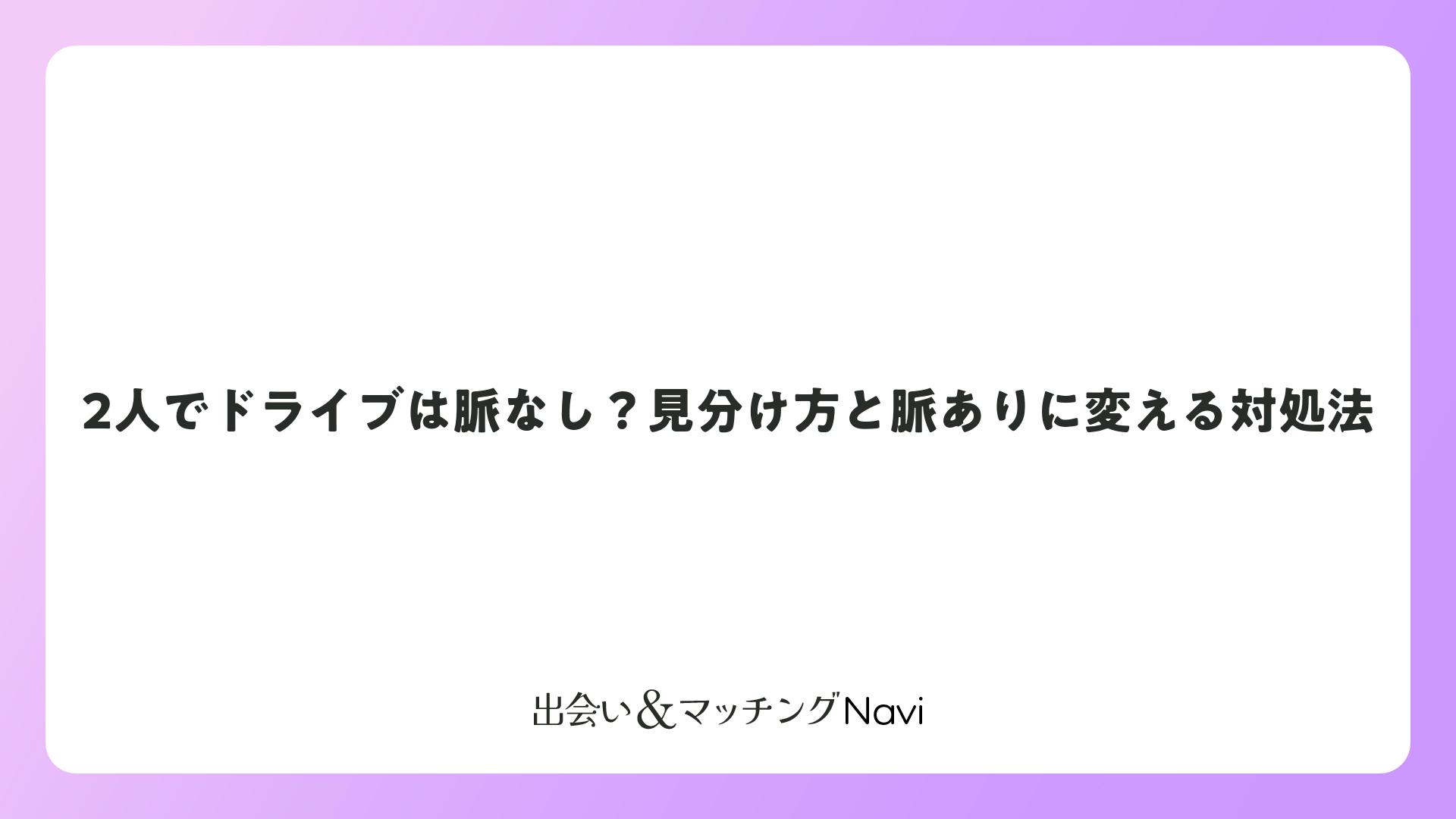 2人でドライブ脈なしの心配は、細やかな気遣いとポジティブな対応で解消できます。脈ありサインを活かし、関係を深めましょう。ドライブは恋のチャンスです!