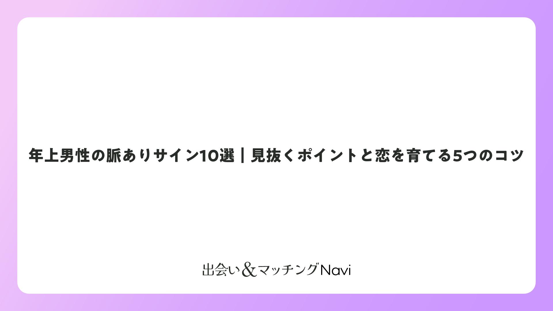 年上男性の脈ありサイン10選|見抜くポイントと恋を育てる5つのコツをまとめました