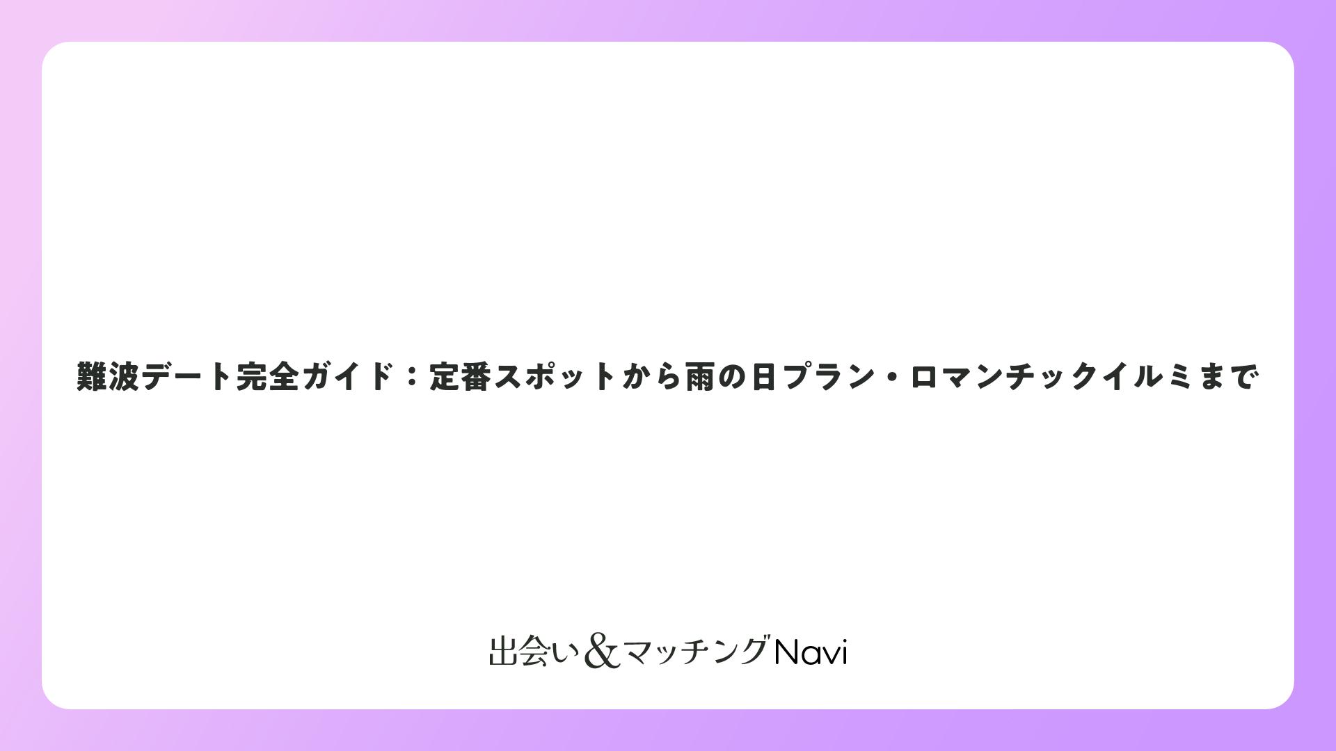 難波デート完全ガイド:定番スポットから雨の日プラン・ロマンチックイルミまでをまとめました