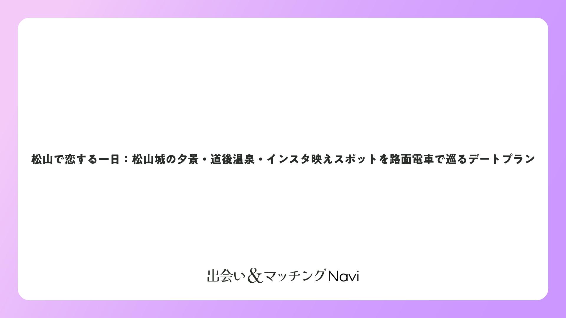 松山市は、歴史的な価値を持つ建造物、自然の美しさ、そして地元グルメが融合した、カップルにとって理想的なデート地です。松山城での夕暮れの景色、道後温泉での情緒的な時間、萬翠荘での優雅な体験、そして圓満寺での恋愛成就の祈りなど、多彩なデート体験が可能です。路面電車を利用した効率的な巡り方により、一日で松山の主要なスポットを訪問できます。季節ごとに異なる表情を見せる松山で、大切なパートナーとの思い出を作ってみてはいかがでしょうか。