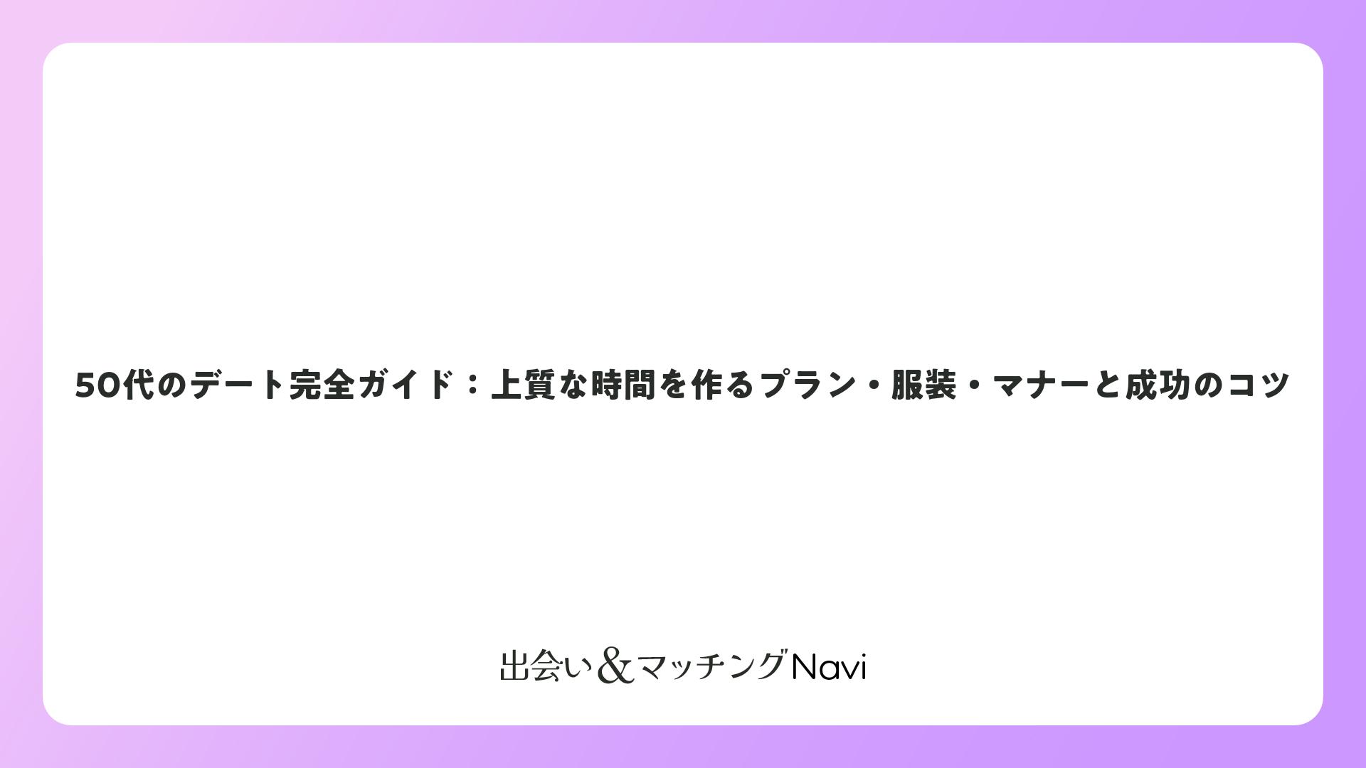 50代のデートは、若い頃とは異なり、ゆったりとしたペースで心のつながりを大切にしながら楽しむのが魅力です。経験豊富な年齢だからこそ、経済的な余裕や深い会話を活かした上質な時間が過ごせます。この記事では、50代向けのデートプラン、服装のポイント、マナー、成功のコツなどを詳しく紹介します。