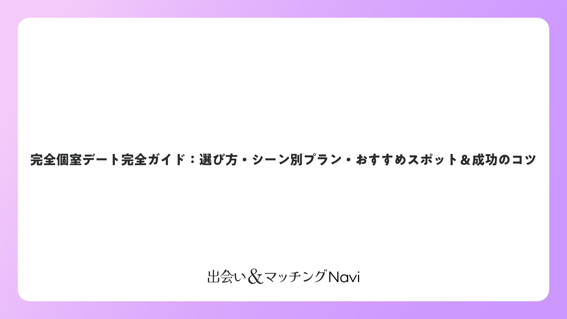 完全個室デート完全ガイド:選び方・シーン別プラン・おすすめスポット&成功のコツをまとめました