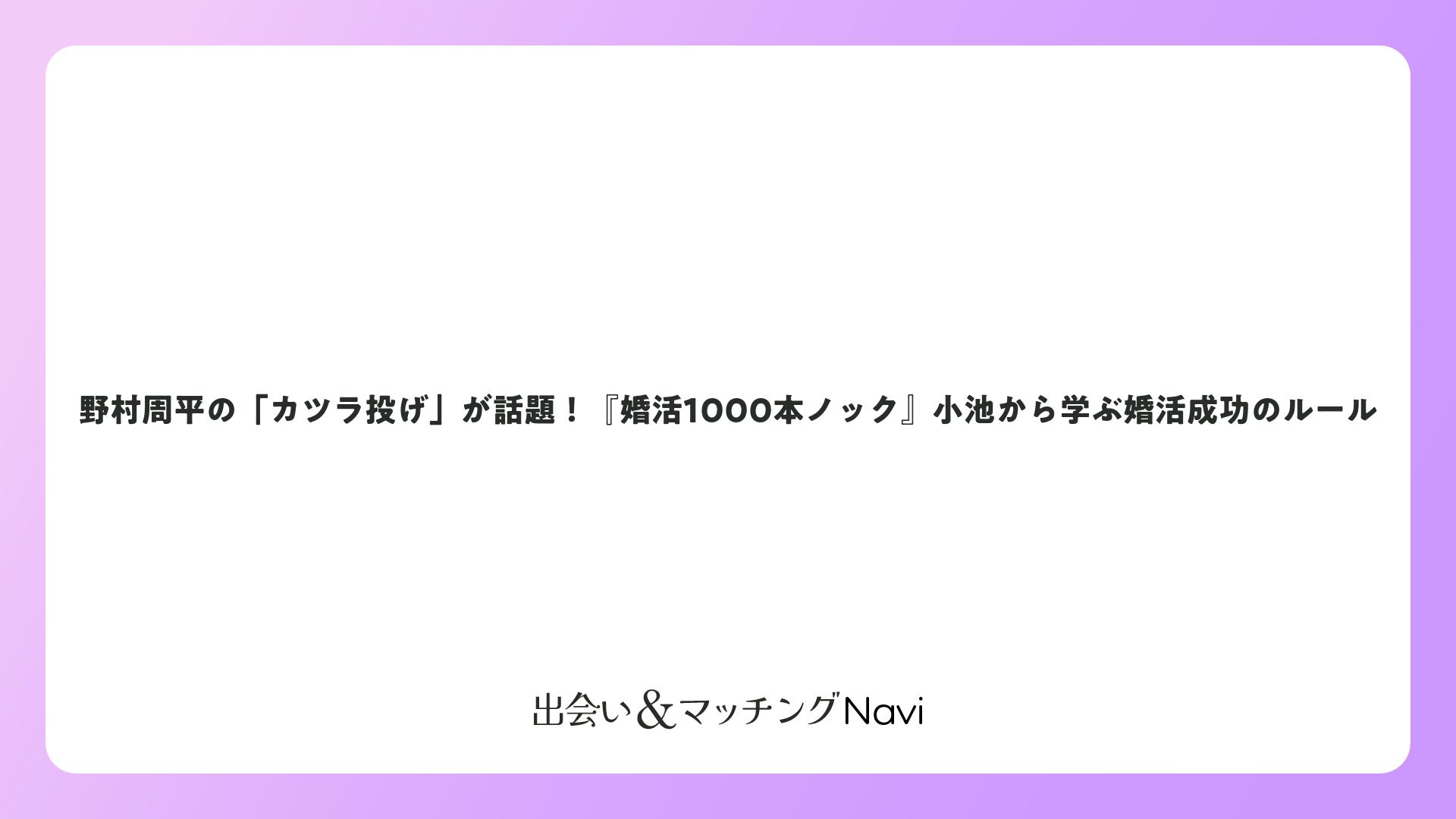 野村周平の「カツラ投げ」が話題!『婚活1000本ノック』小池から学ぶ婚活成功のルールをまとめました