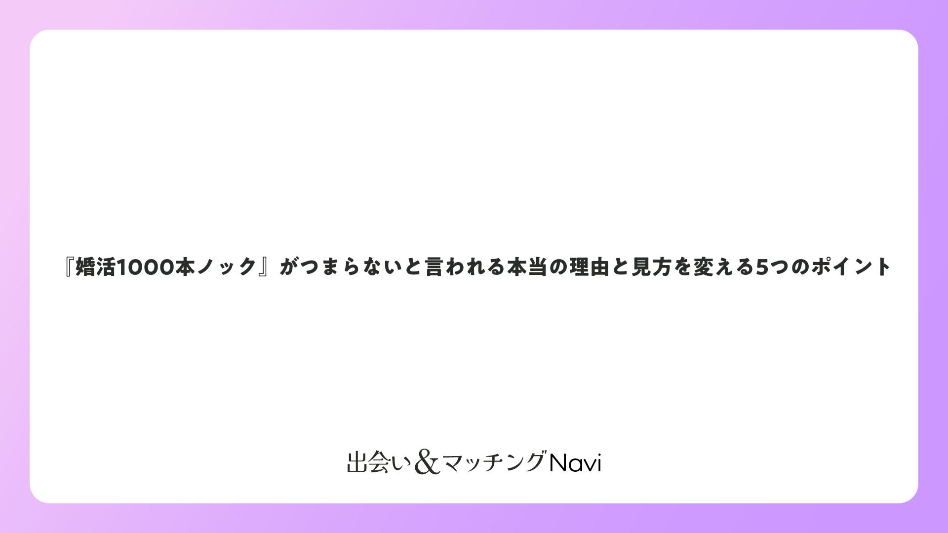 『婚活1000本ノック』がつまらないと言われる本当の理由と見方を変える5つのポイントをまとめました