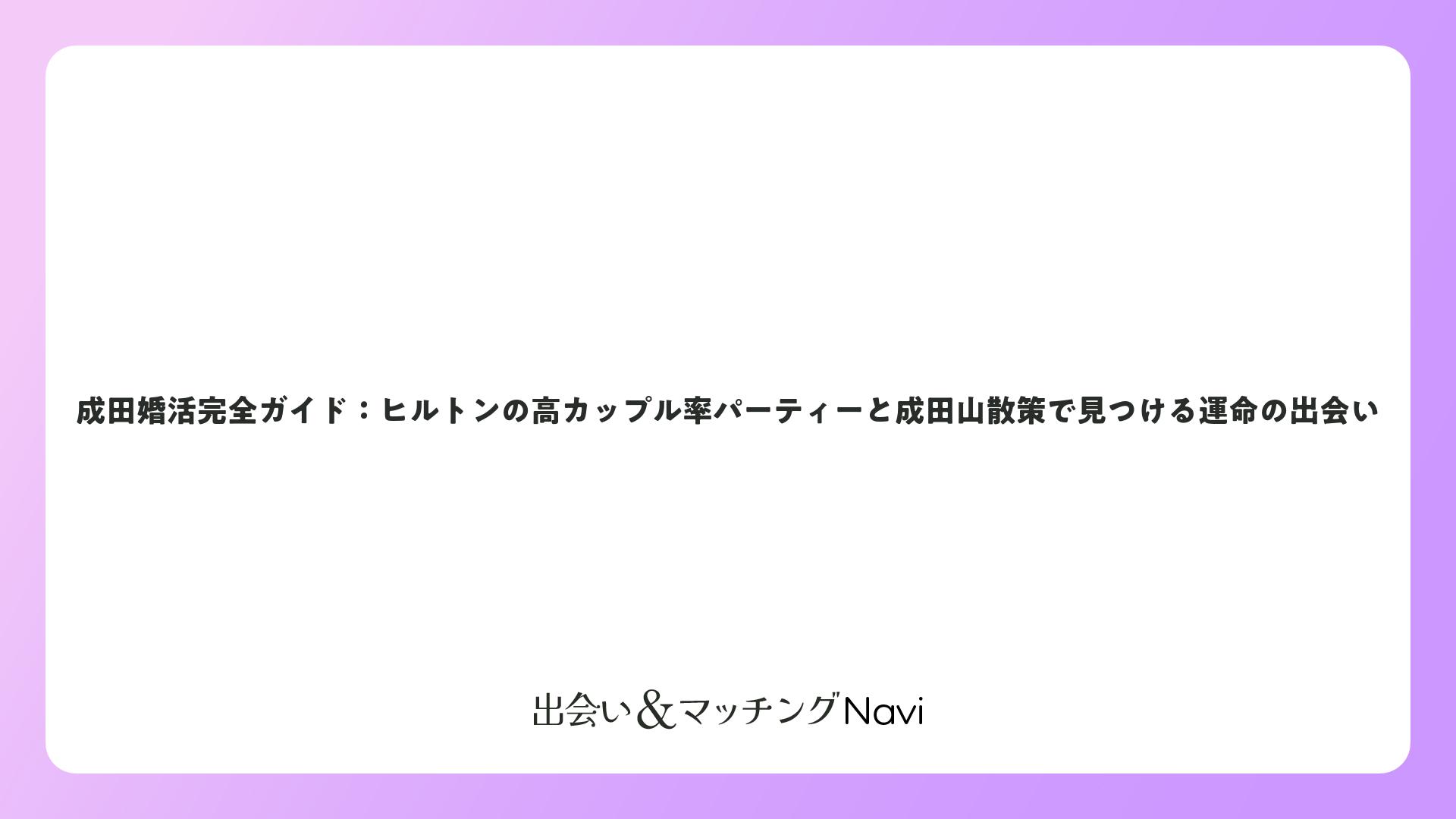 成田婚活完全ガイド:ヒルトンの高カップル率パーティーと成田山散策で見つける運命の出会いをまとめました