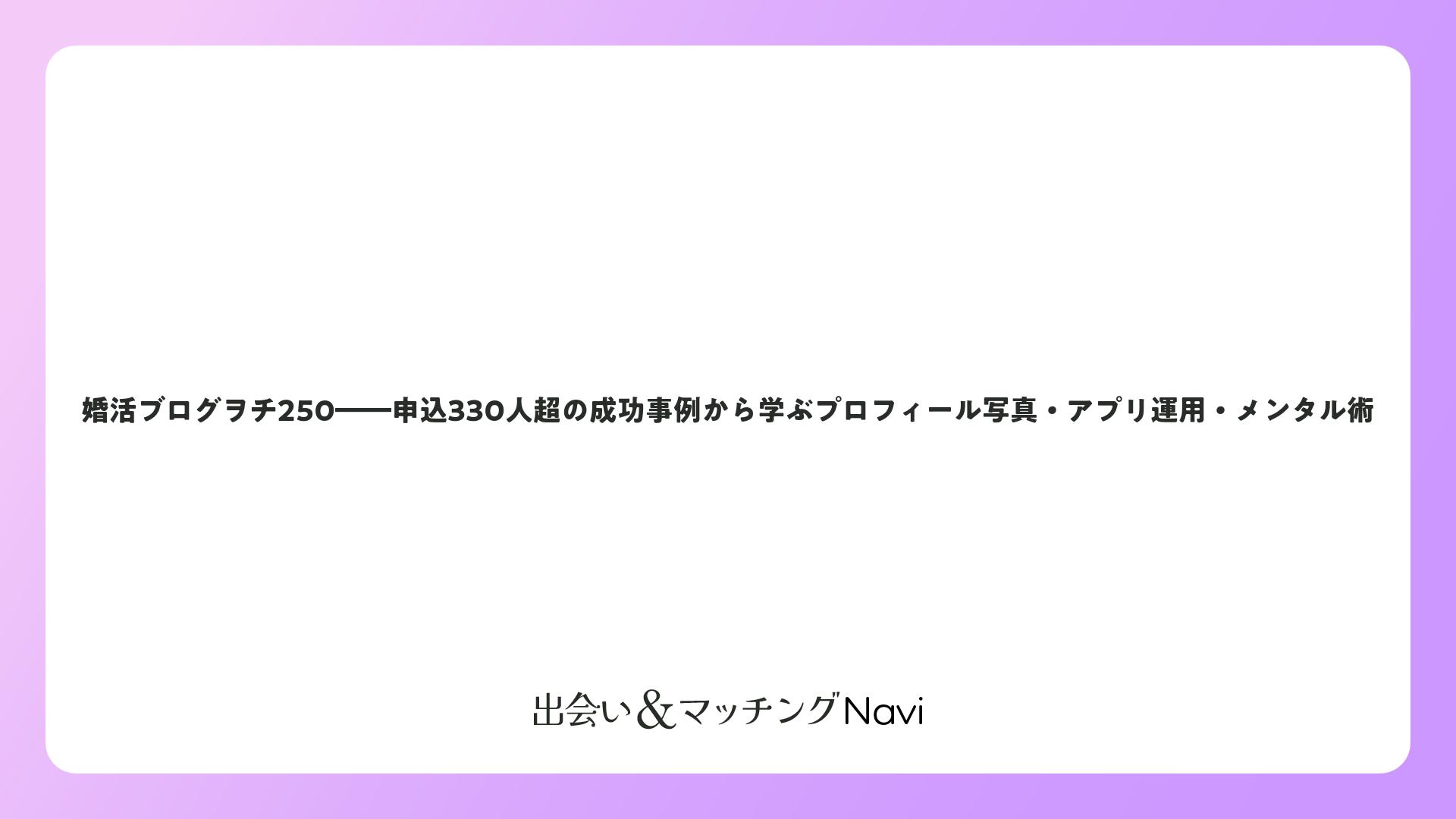 婚活ブログヲチ250――申込330人超の成功事例から学ぶプロフィール写真・アプリ運用・メンタル術をまとめました