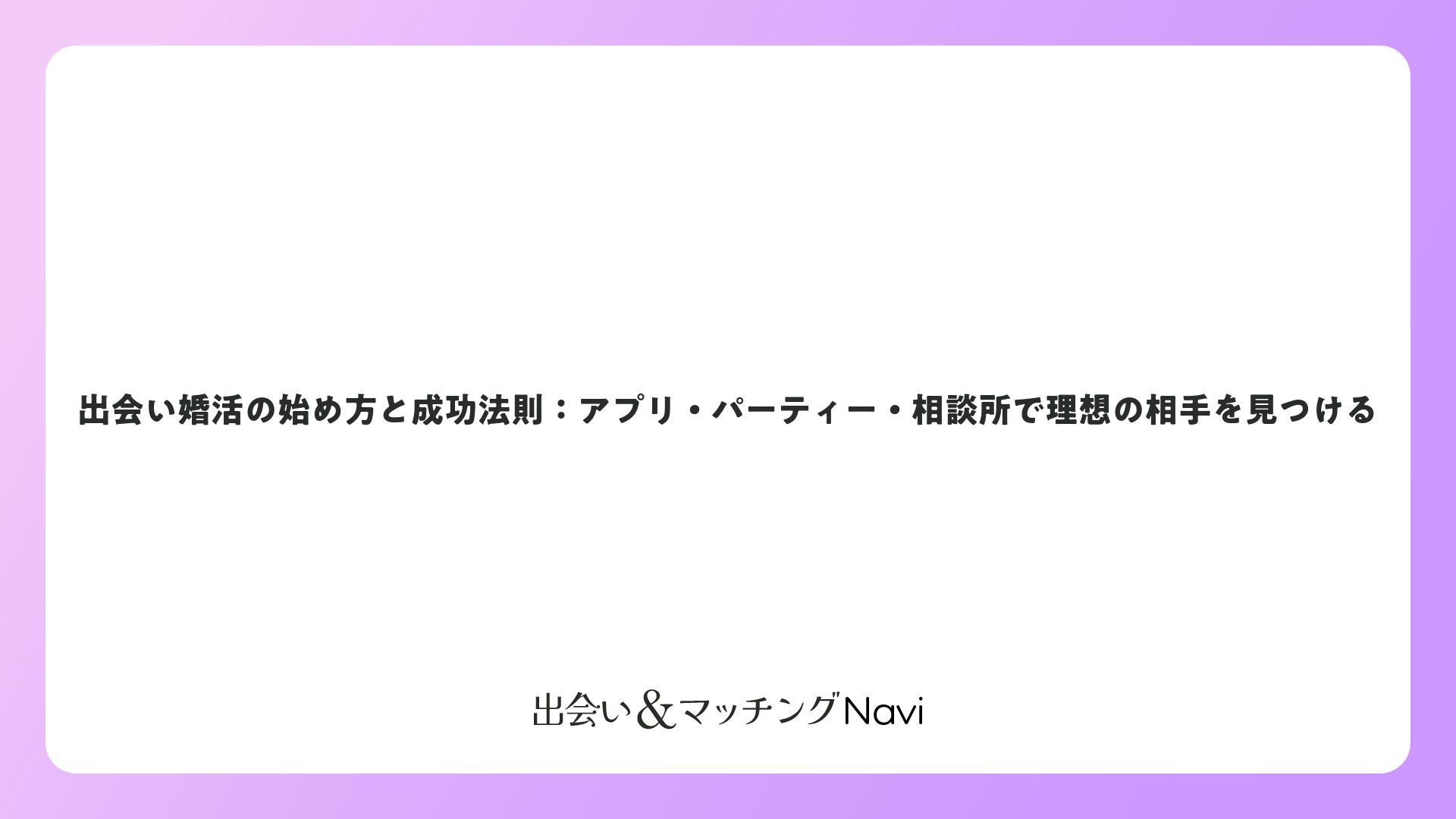 出会い婚活の始め方と成功法則:アプリ・パーティー・相談所で理想の相手を見つけるをまとめました
