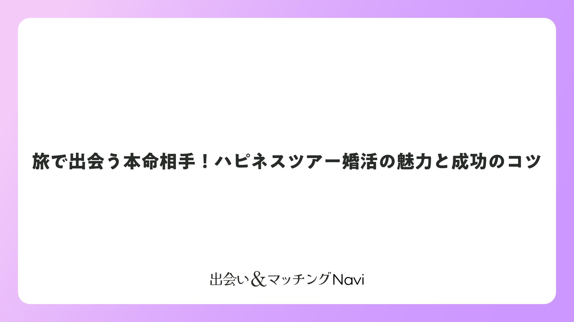 ハピネスツアーは、単なる観光ツアーではなく、参加者の人生を変える可能性を秘めたサービスです。旅を楽しみながら、自然な形で理想のパートナーを見つけることができるこのツアーは、多くの人から支持を集めています。公式ページに掲載されている成功事例は、ハピネスツアーが実際に多くのカップルを生み出していることを示しています。婚活に疲れた人、旅行好きな人、一歩踏み出せない人など、様々な人にとってハピネスツアーは新しい可能性を開く扉となるでしょう。自分に合ったツアーを選び、積極的に交流することで、あなたも理想のパートナーとの出会いを実現できるかもしれません。