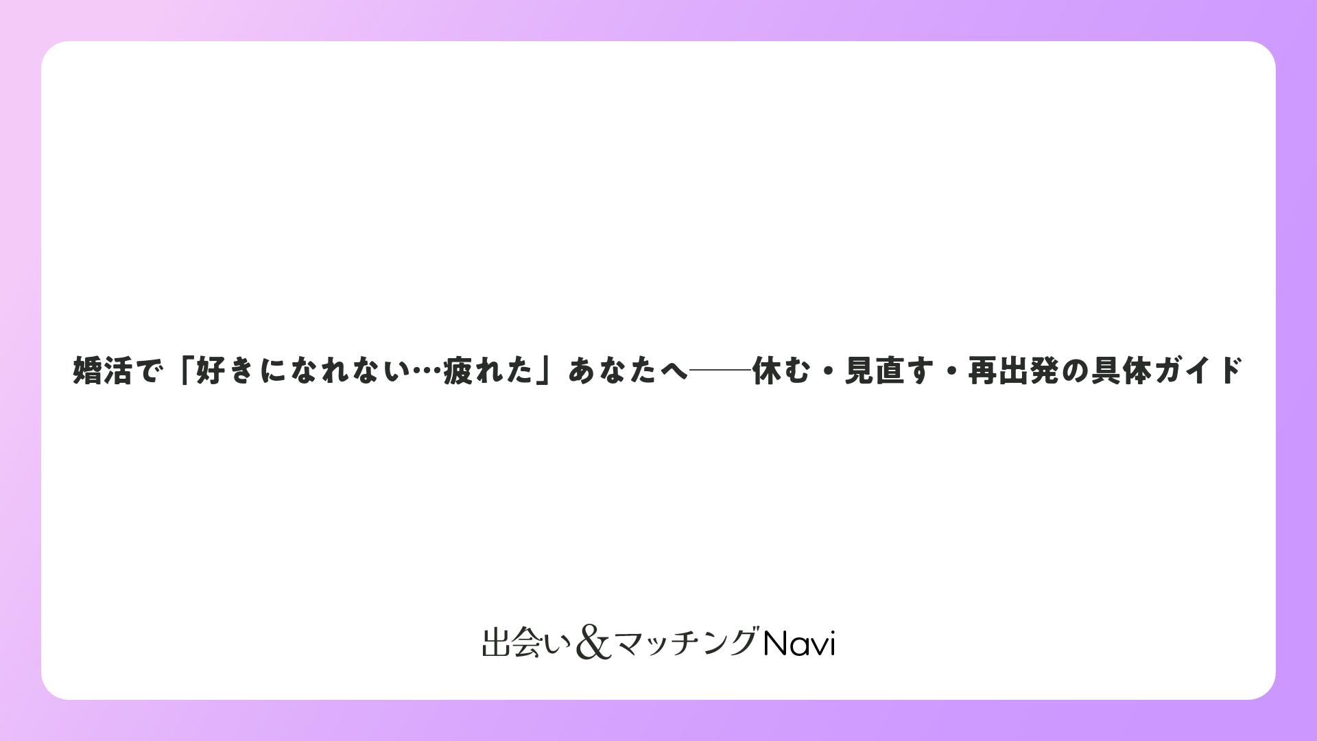 婚活で「好きになれない…疲れた」あなたへ──休む・見直す・再出発の具体ガイドをまとめました