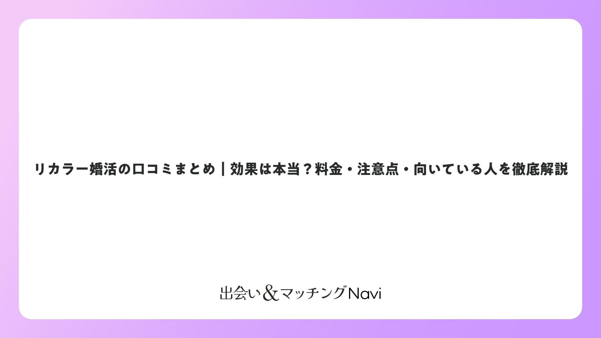 リカラーは2023年に始まった比較的新しいサービスということもあり、口コミがまだ少ないという課題があります。また、公式サイトに「どんな流れで出会えるのか」「具体的に何がサポートされるのか」といった詳細な情報が少ないため、「結局どんな婚活サービスなの?」と感じる人もいるかもしれません。