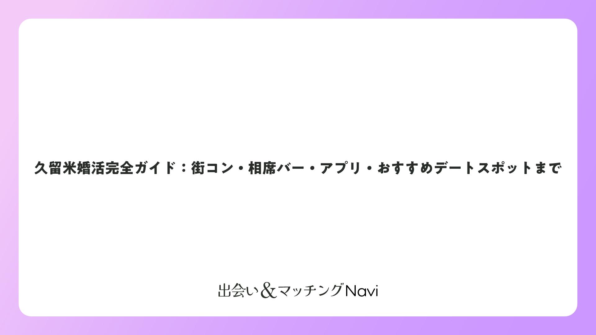 福岡県の中心部に位置する久留米市は、活気あふれる街並みと温かな人情が魅力の場所です。この街で婚活を始める人は年々増えており、街コン、婚活パーティー、レンタルスペース、相席バーなど、多様な出会いの場が充実しています。行政の支援も手厚く、独身者同士がつながりやすい環境が整っています。本記事では、久留米で効果的に婚活を進めるための情報を、ポジティブに詳しくご紹介します。