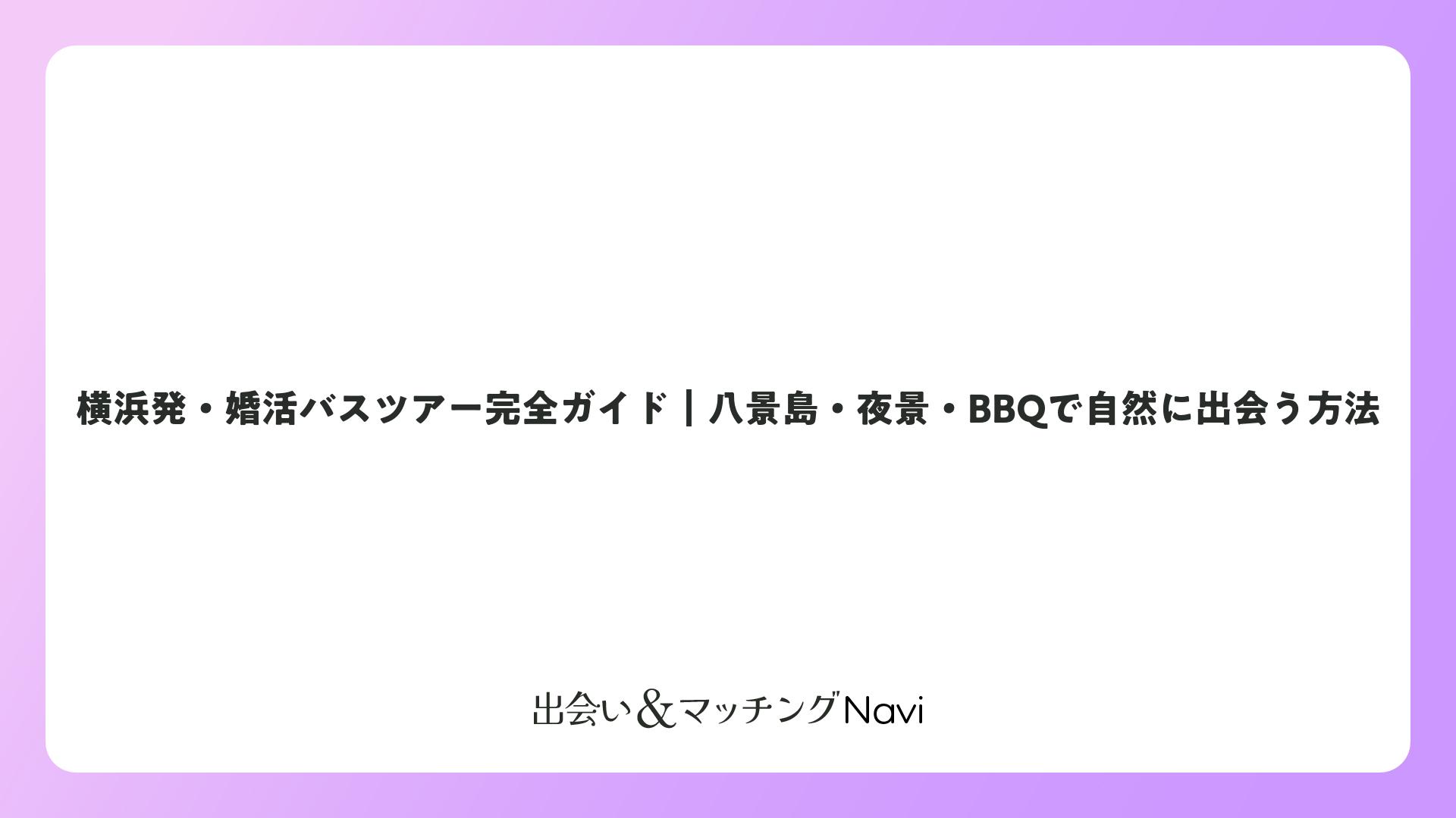 婚活バスツアー横浜は、横浜の絶景と出会いを融合させた最高の婚活方法です。八景島シーパラダイスや夜景巡り、BBQなどの楽しい要素満載で、自然な交流が生まれ、カップル成立も多数。補助制度でお得に参加でき、プロサポートで初心者安心。素敵なパートナーとの出会いを、ぜひ横浜のバスツアーで叶えましょう!