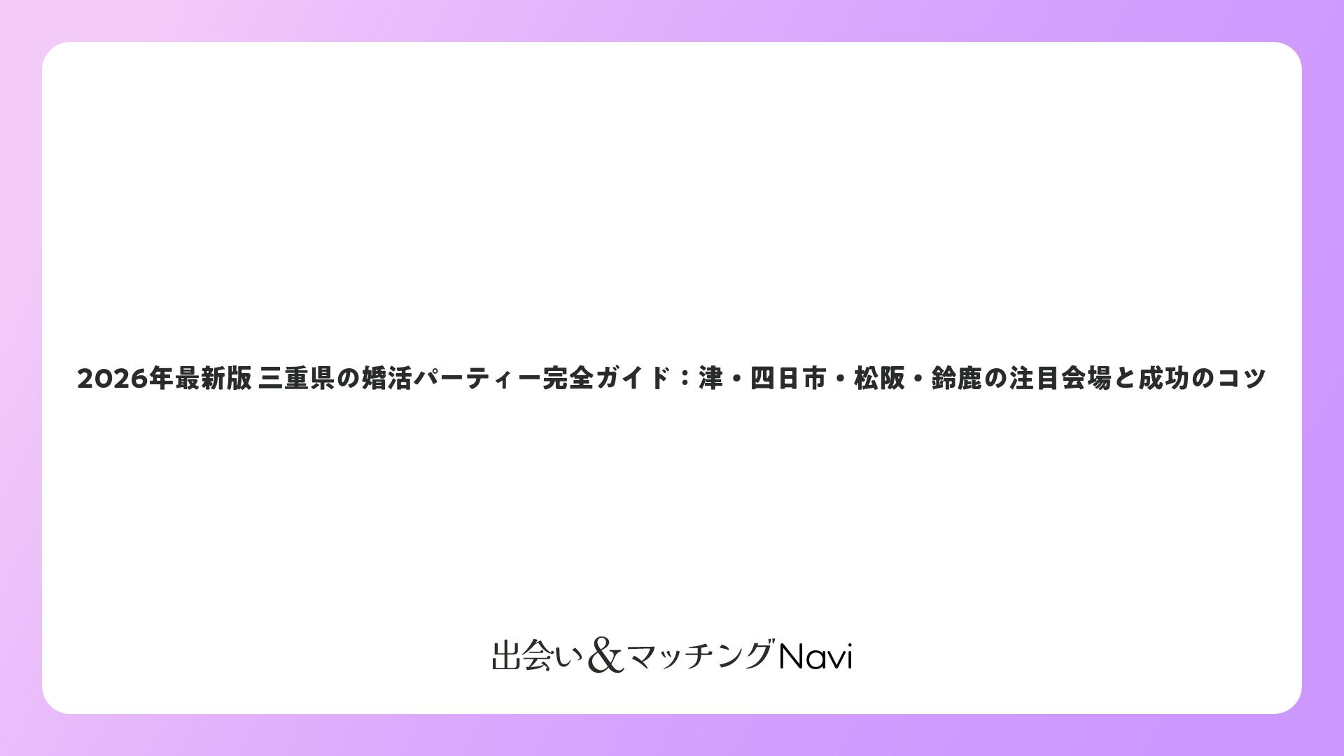 2026年最新版 三重県の婚活パーティー完全ガイド:津・四日市・松阪・鈴鹿の注目会場と成功のコツをまとめました