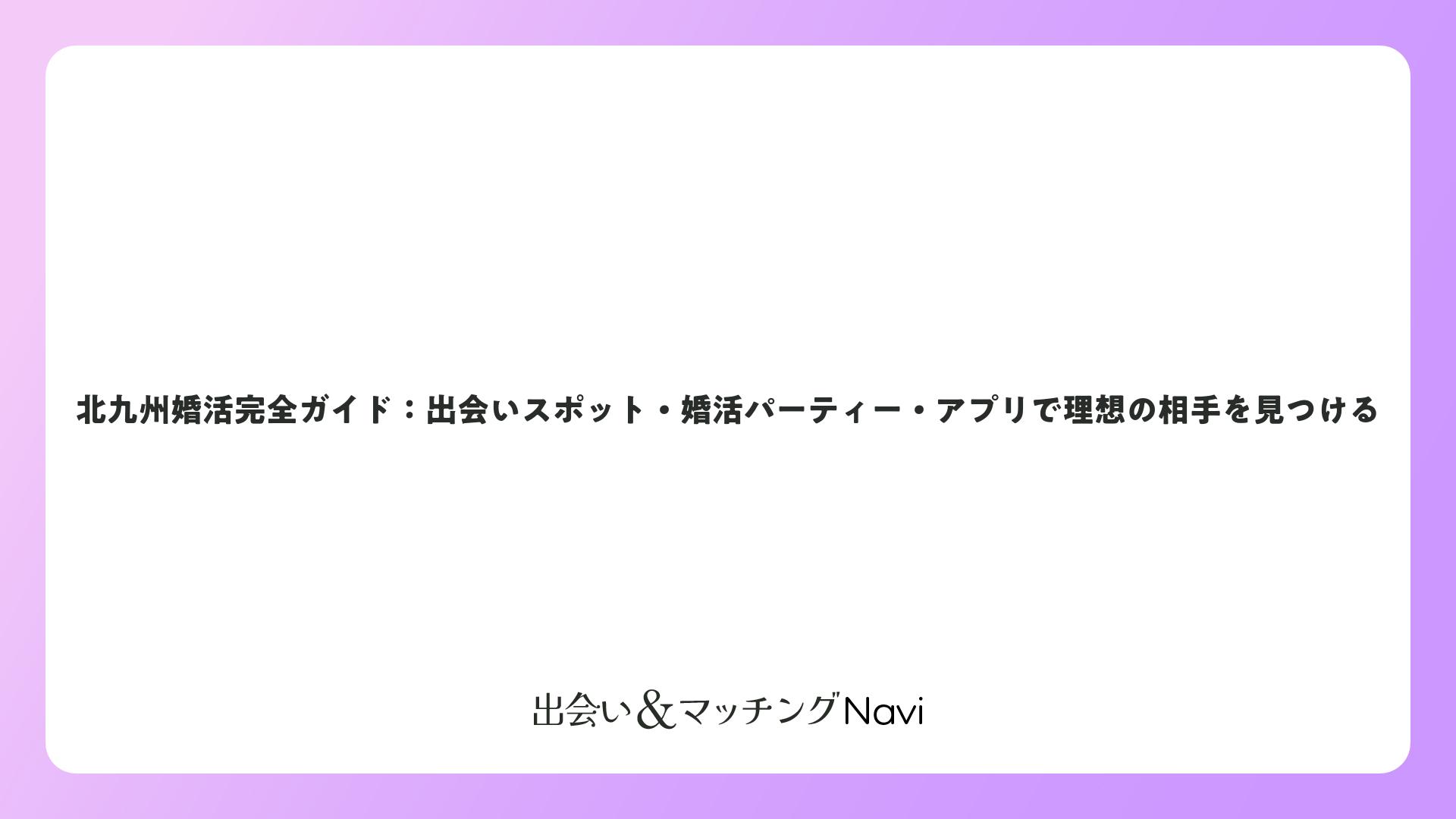 北九州婚活完全ガイド:出会いスポット・婚活パーティー・アプリで理想の相手を見つけるをまとめました