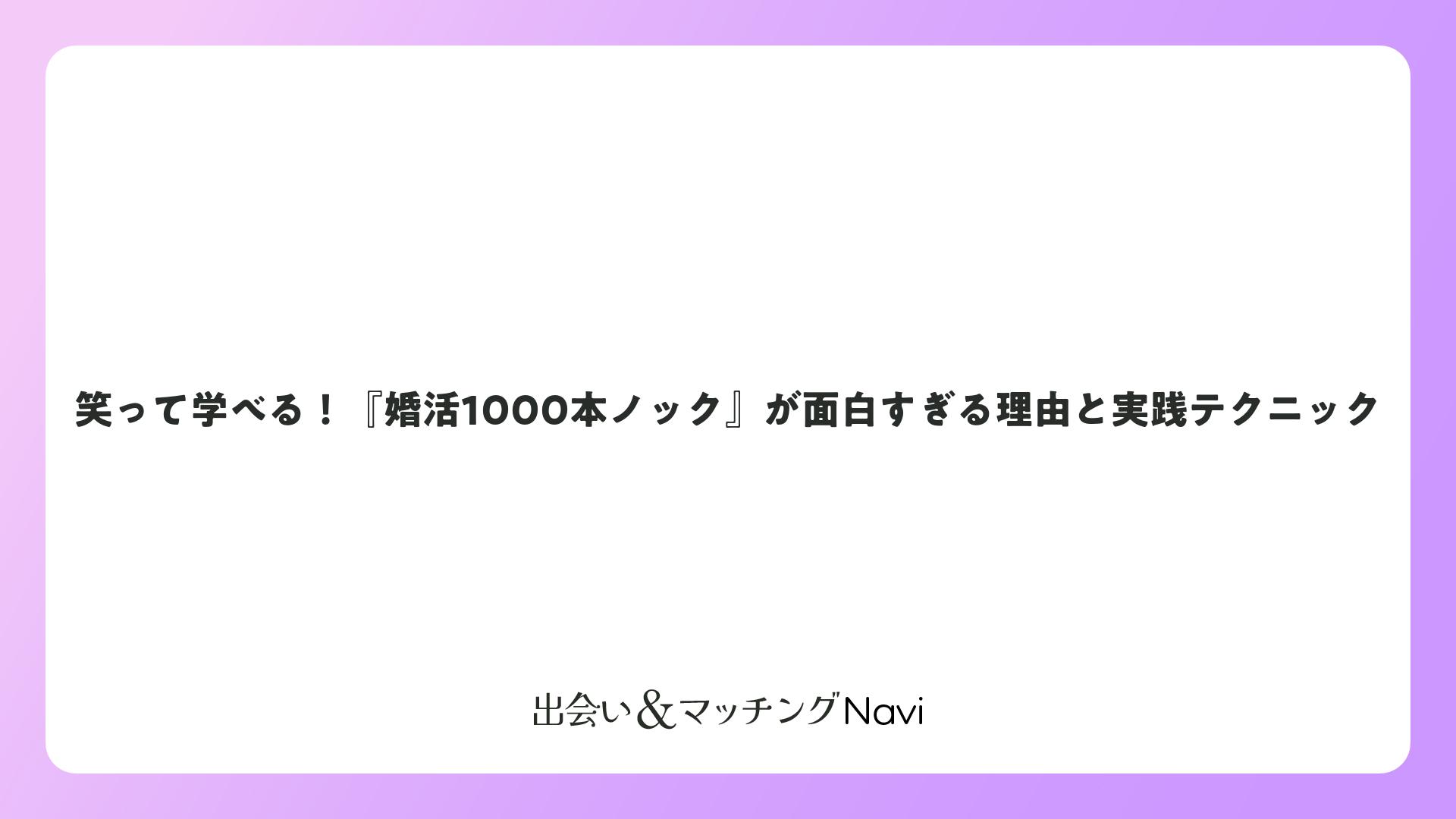 笑って学べる!『婚活1000本ノック』が面白すぎる理由と実践テクニック
