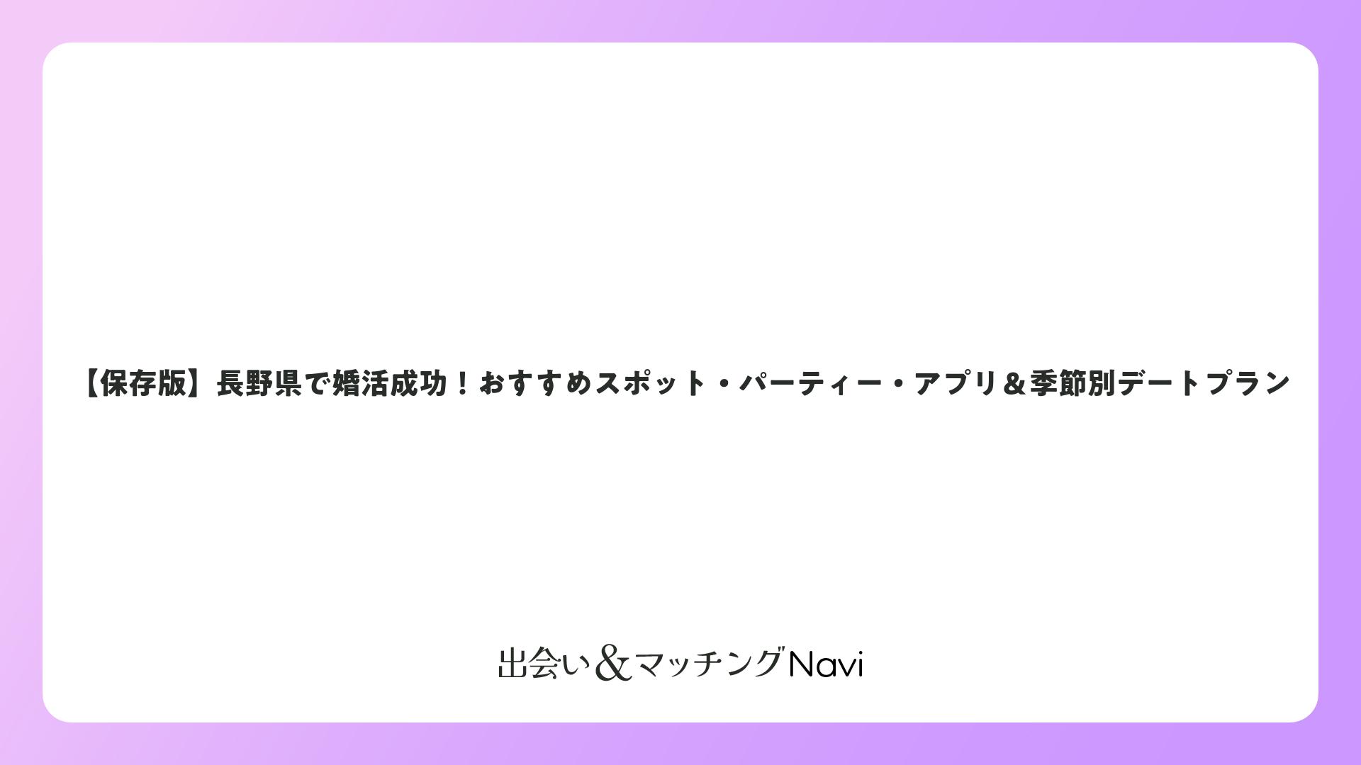 長野県は自然豊かな出会いの宝庫。婚活スポット、パーティー、アプリを活用すれば、理想のパートナーが見つかります。積極的に行動して幸せを掴みましょう。