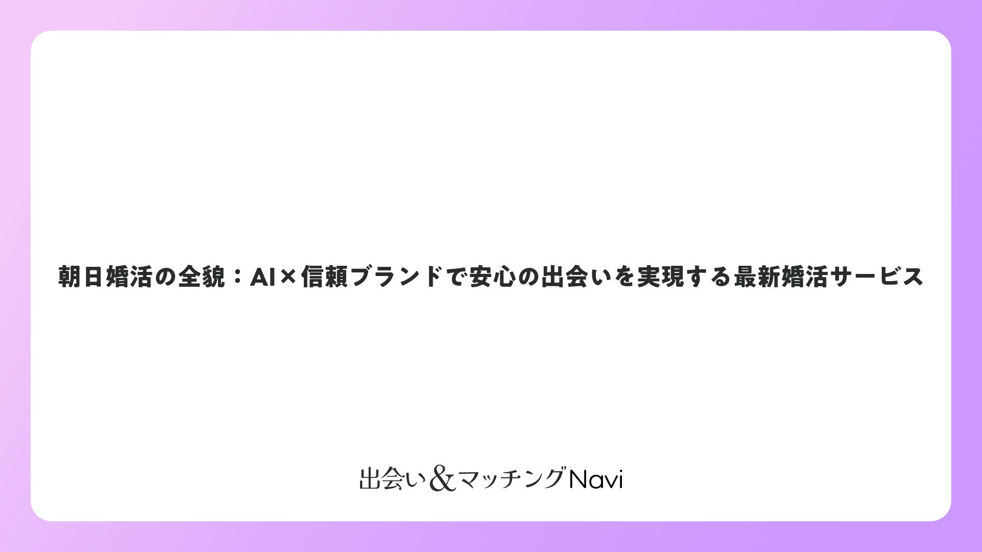 朝日婚活の全貌:AI×信頼ブランドで安心の出会いを実現する最新婚活サービスをまとめました