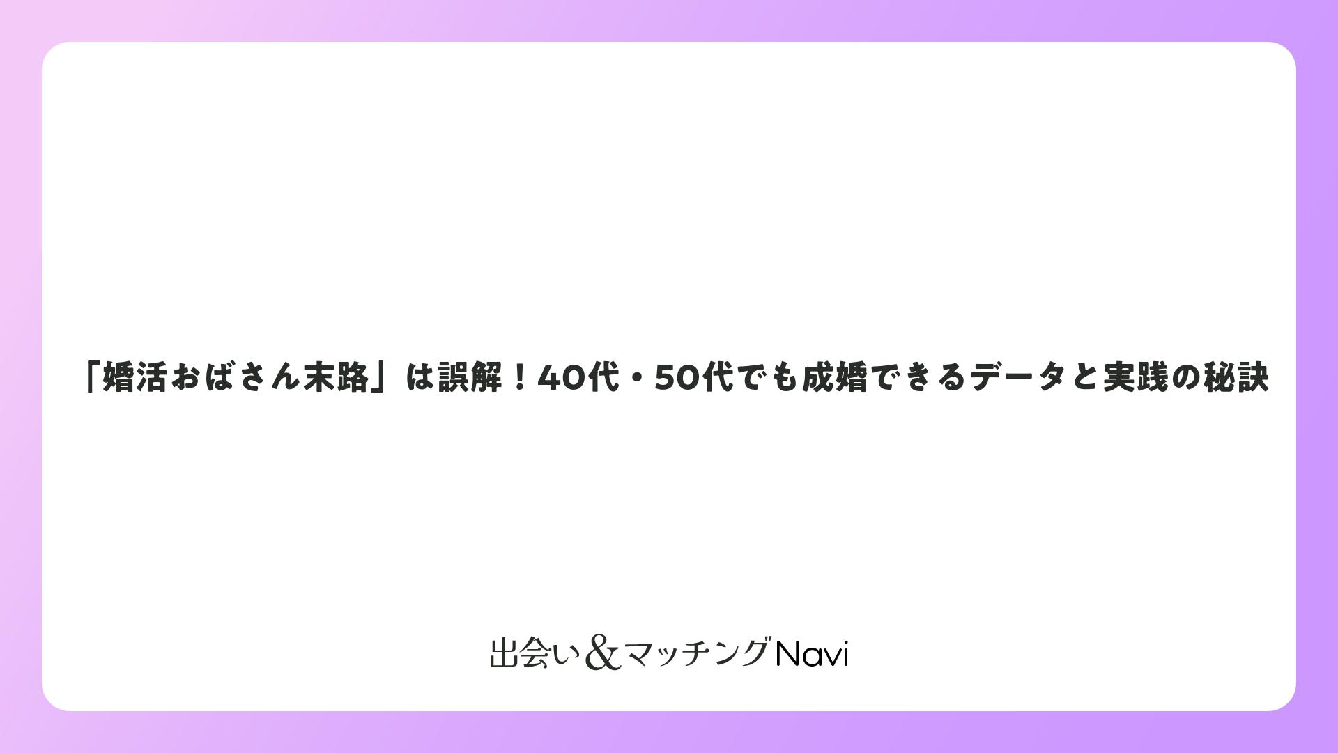 「婚活おばさん末路」は誤解!40代・50代でも成婚できるデータと実践の秘訣をまとめました