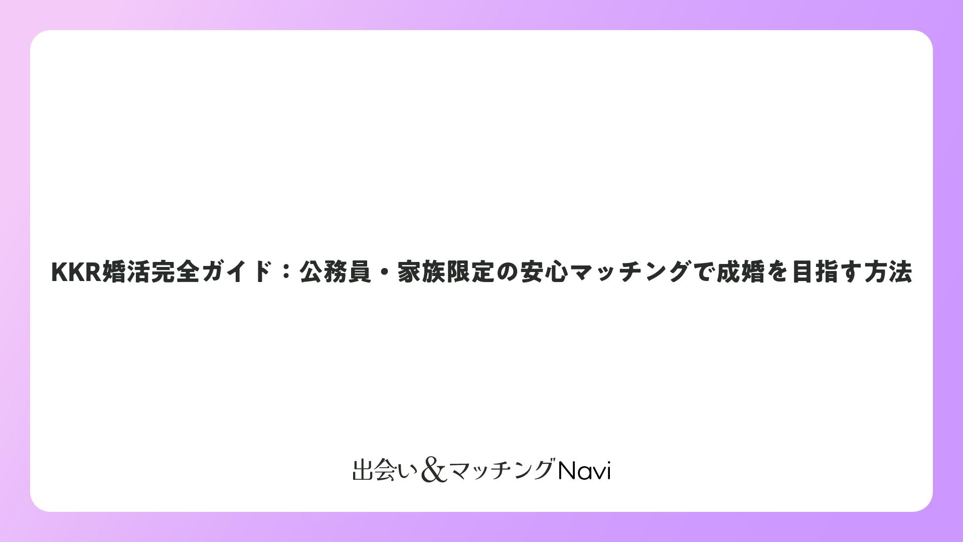 KKR婚活完全ガイド:公務員・家族限定の安心マッチングで成婚を目指す方法をまとめました