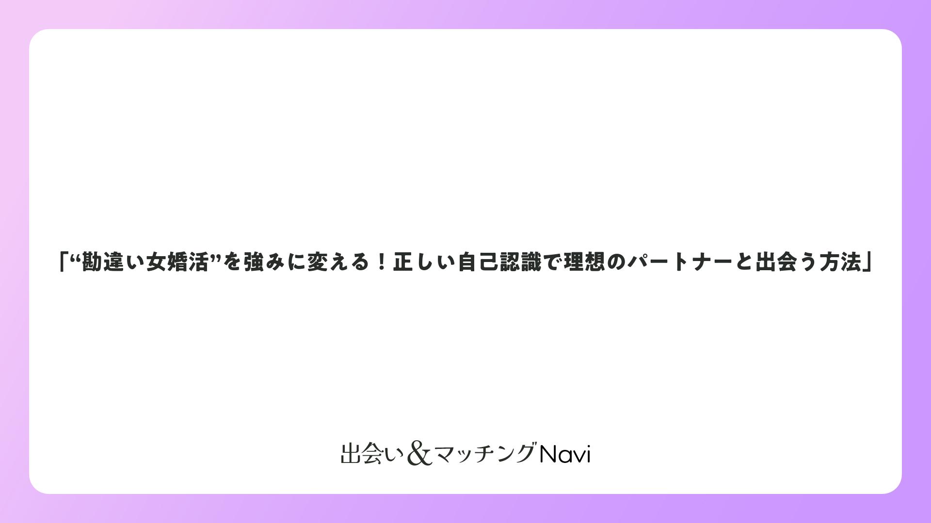 「“勘違い女婚活”を強みに変える!正しい自己認識で理想のパートナーと出会う方法」をまとめました