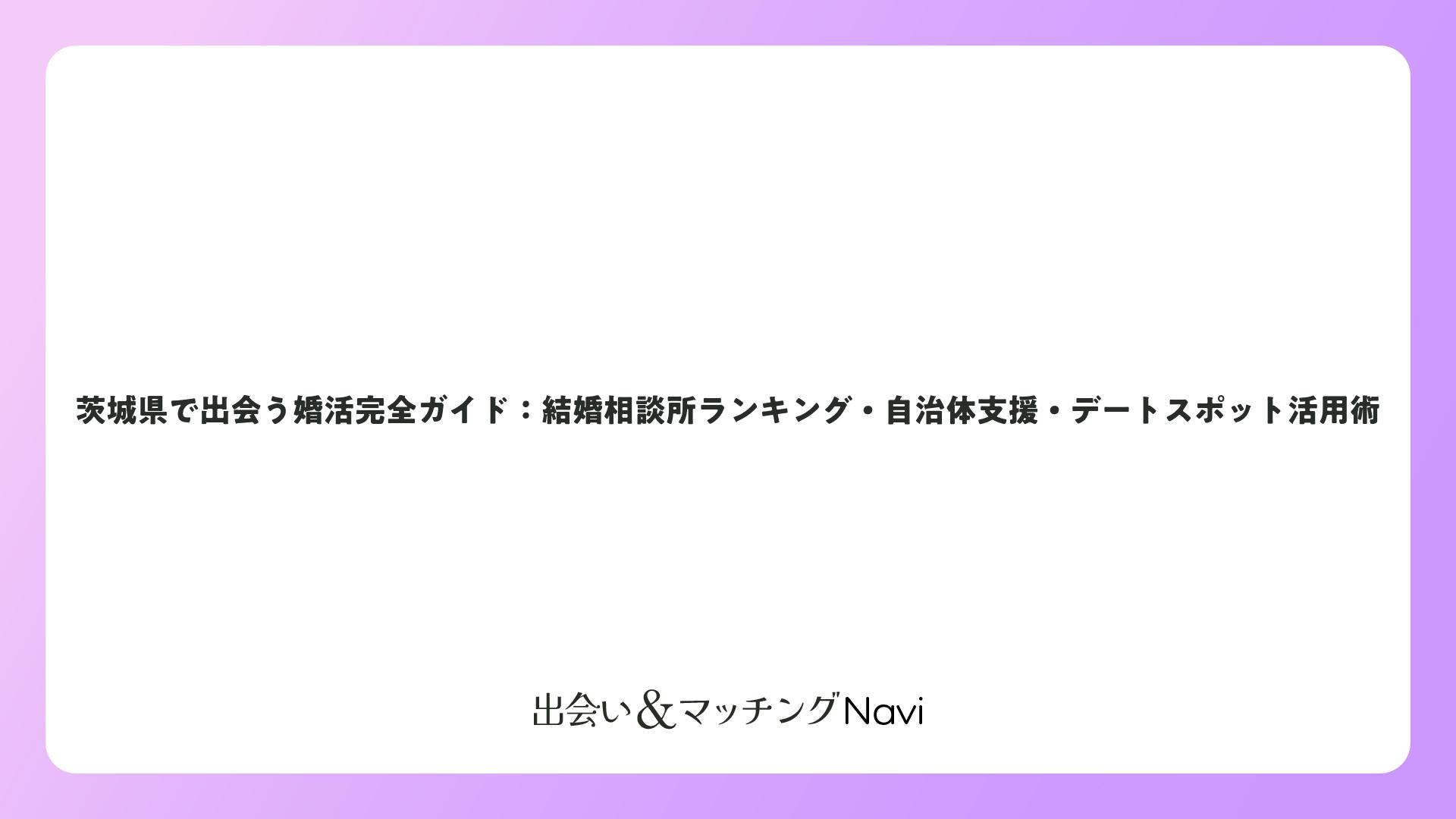 茨城県で出会う婚活完全ガイド:結婚相談所ランキング・自治体支援・デートスポット活用術をまとめました