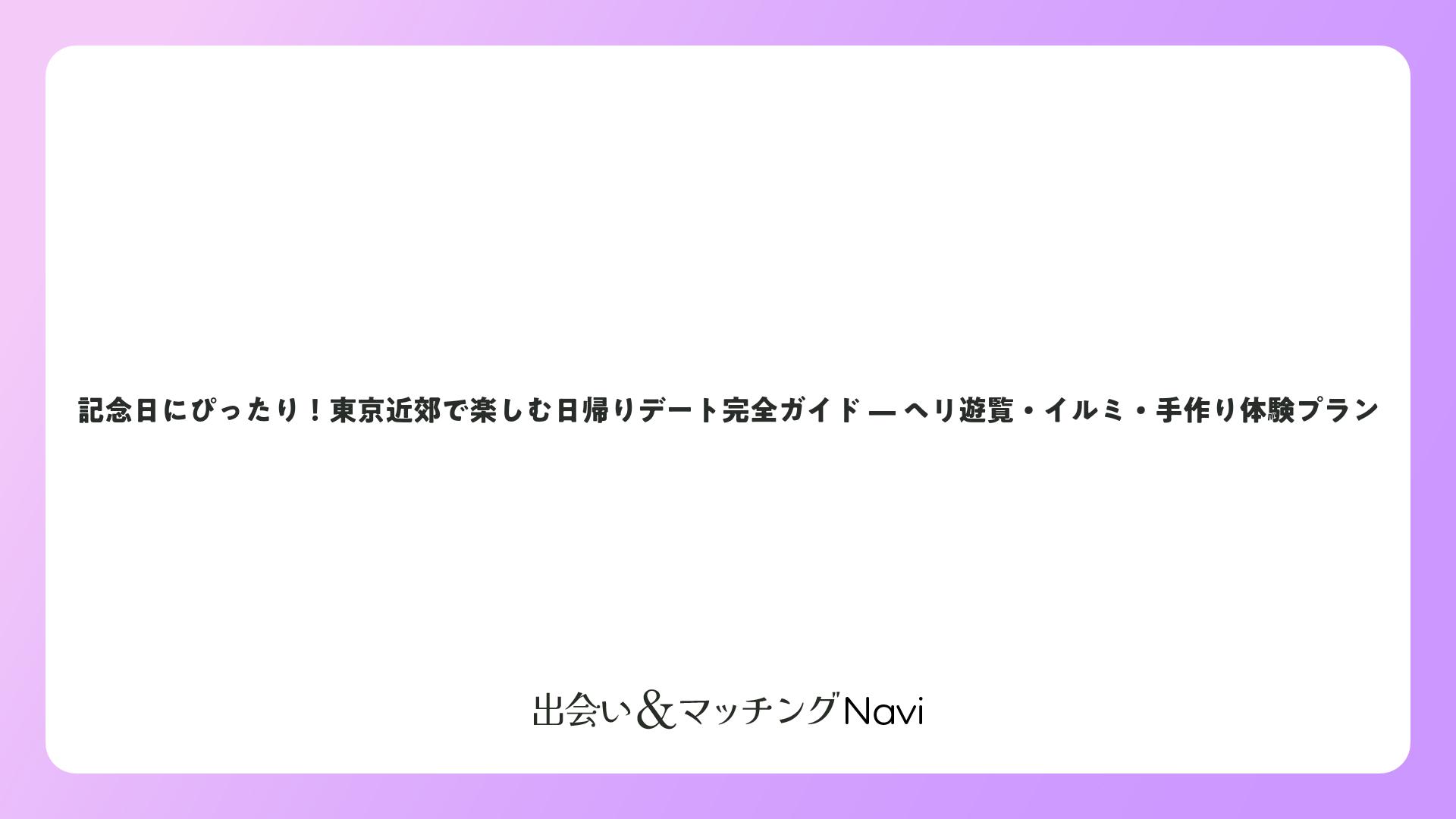 記念日にぴったり!東京近郊で楽しむ日帰りデート完全ガイド — ヘリ遊覧・イルミ・手作り体験プランをまとめました