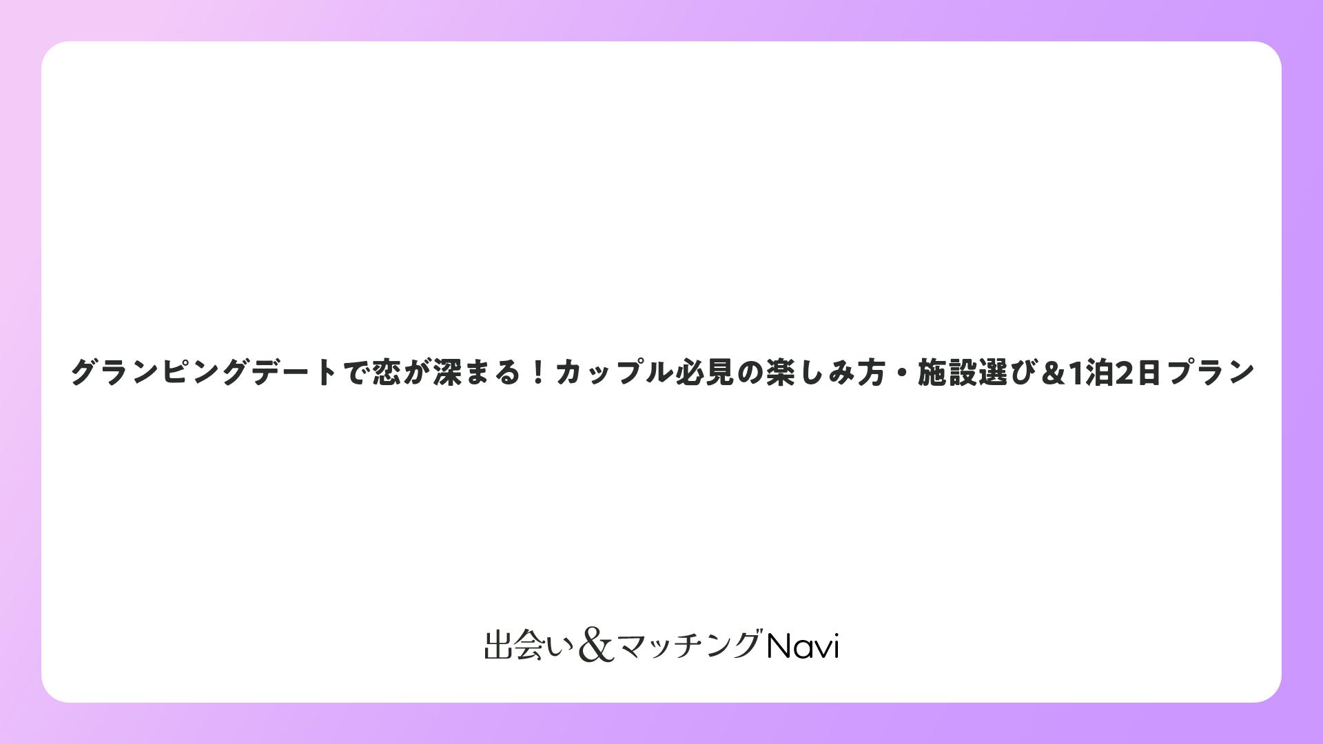 グランピングデートを選べば、いつものデートが一変。星空の下で語らい、豪華グルメを味わい、自然の中で愛を育む贅沢な時間を過ごせます。全国の魅力的な施設で、あなたたちだけの特別な一日を今すぐ計画しましょう。きっと、二人の関係がより輝くはずです。