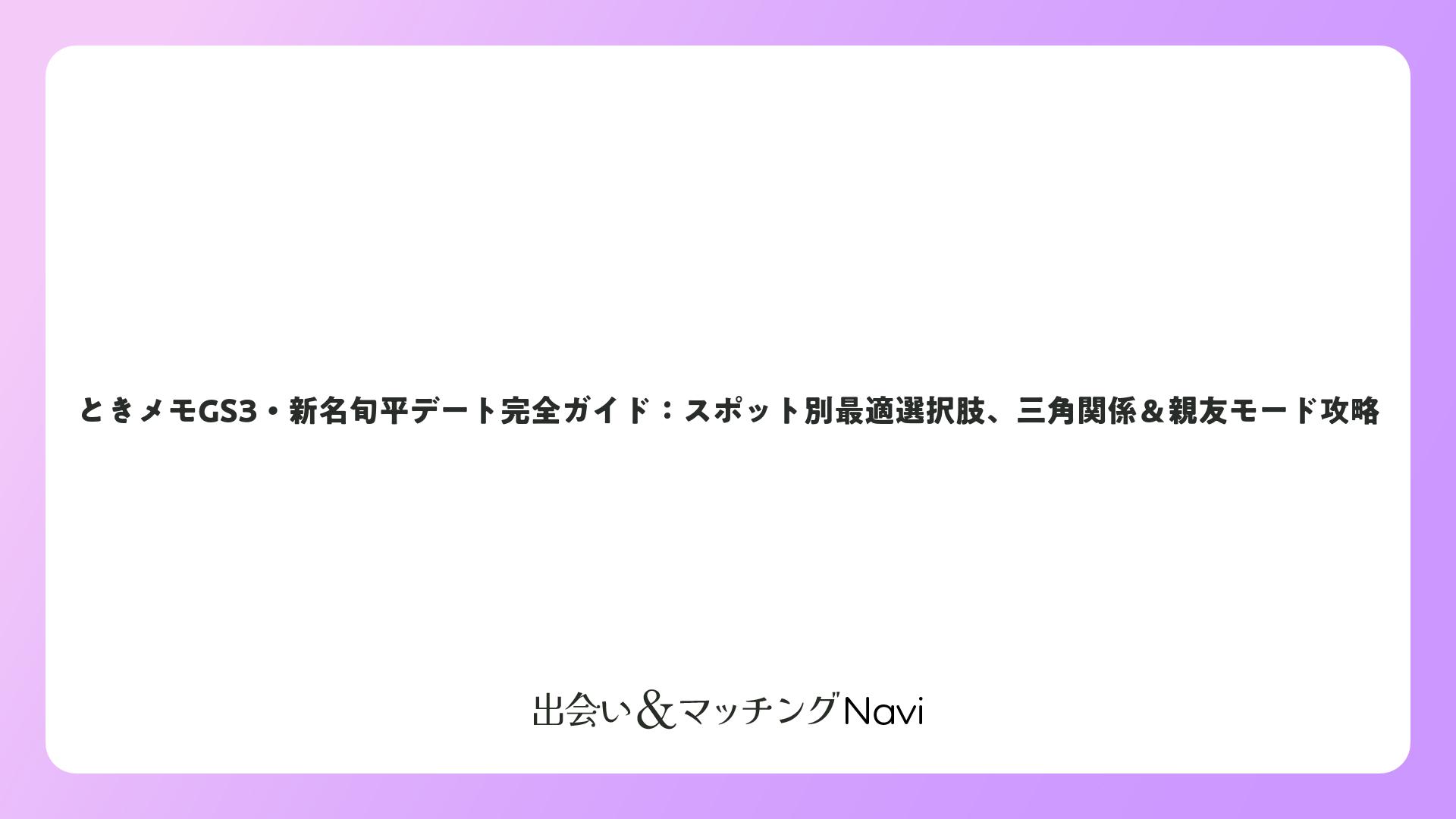 ときメモGS3の新名旬平デートは、クールな外見とは裏腹の優しさと深い恋愛観が魅力満載。デート選択肢を工夫し、三角関係や親友モードを活用すれば、心揺さぶられるストーリーが展開します。Premiumボーナスやスキンシップでさらに充実。プレイヤー皆さんが新名くんと最高の思い出を作れるよう、このガイドが役立てば幸いです!