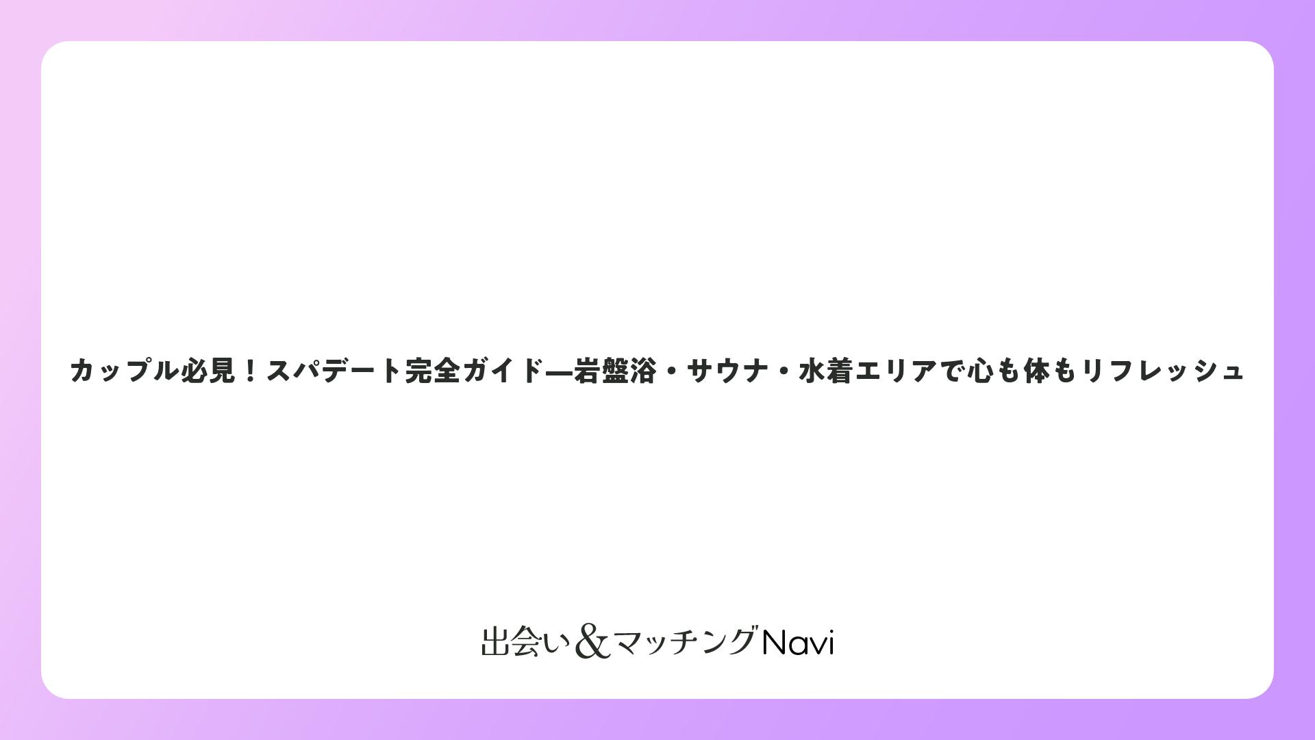 カップル必見!スパデート完全ガイド—岩盤浴・サウナ・水着エリアで心も体もリフレッシュをまとめました