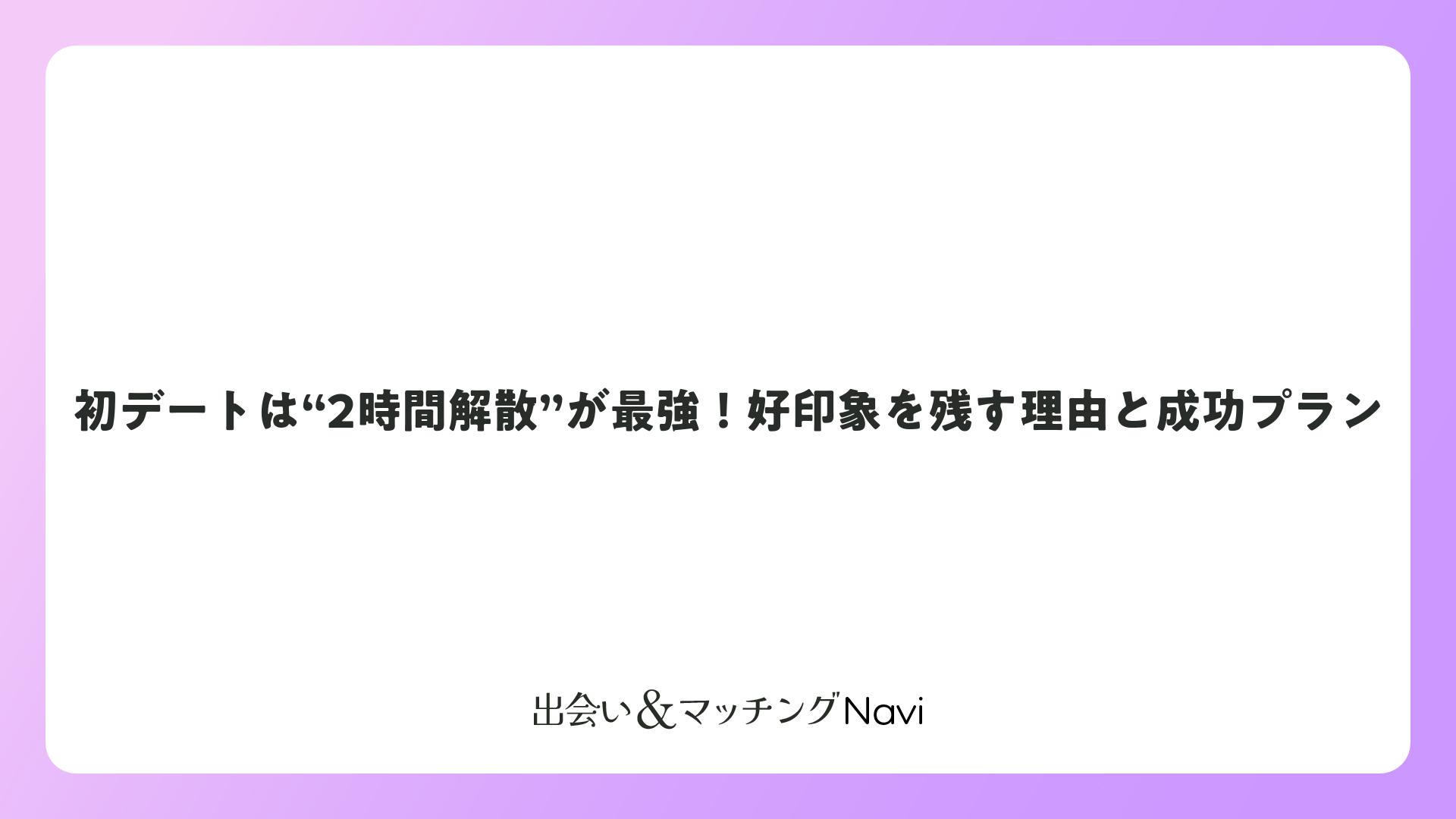 初デートは“2時間解散”が最強!好印象を残す理由と成功プランをまとめました