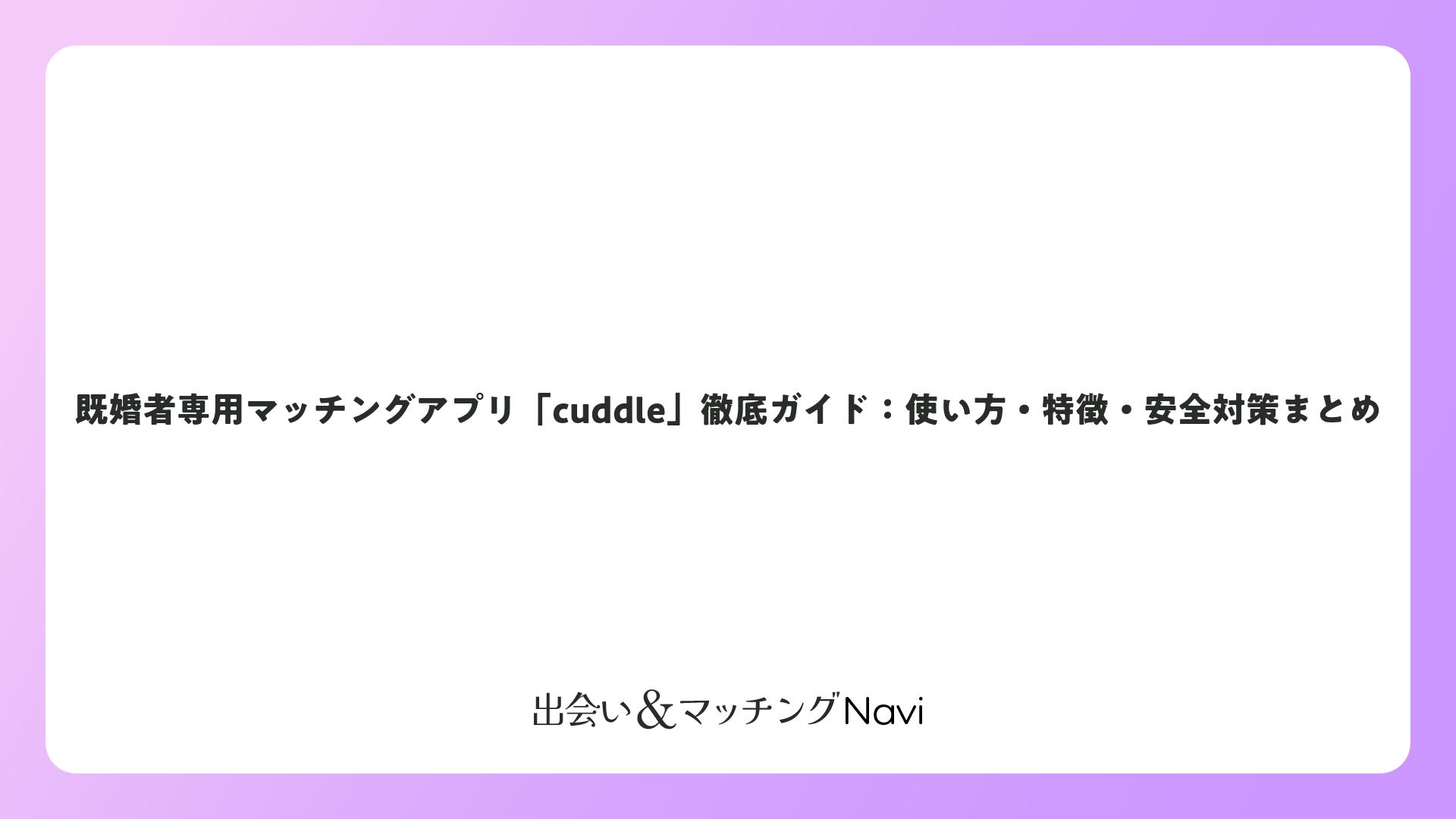 既婚者専用マッチングアプリ「cuddle」徹底ガイド:使い方・特徴・安全対策まとめをまとめました