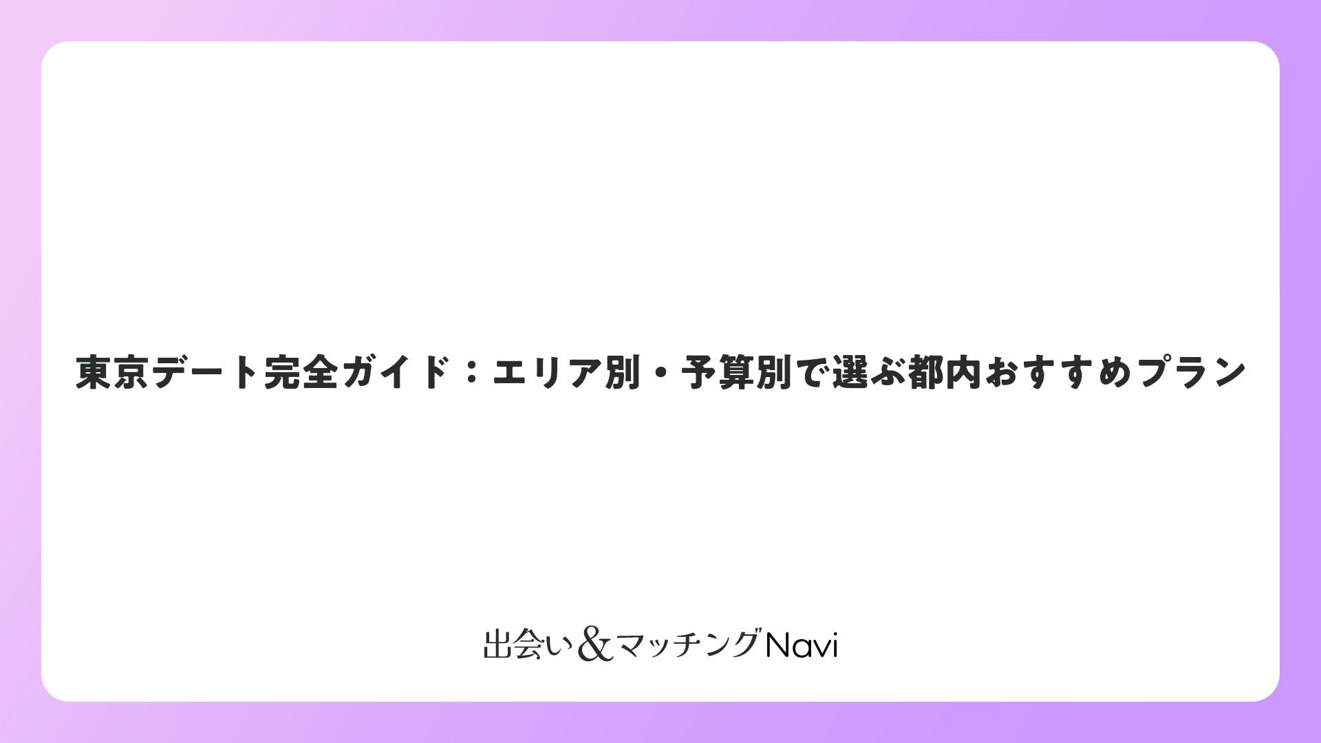 東京デート完全ガイド:エリア別・予算別で選ぶ都内おすすめプラン