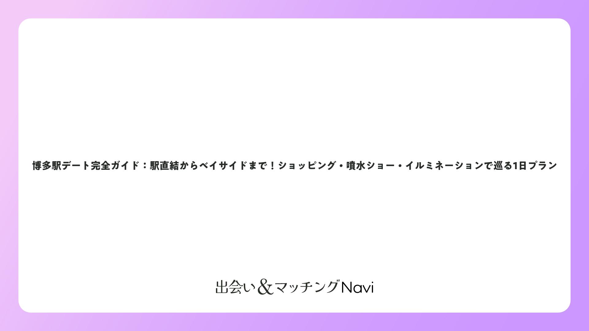 博多駅デート完全ガイド:駅直結からベイサイドまで!ショッピング・噴水ショー・イルミネーションで巡る1日プラン