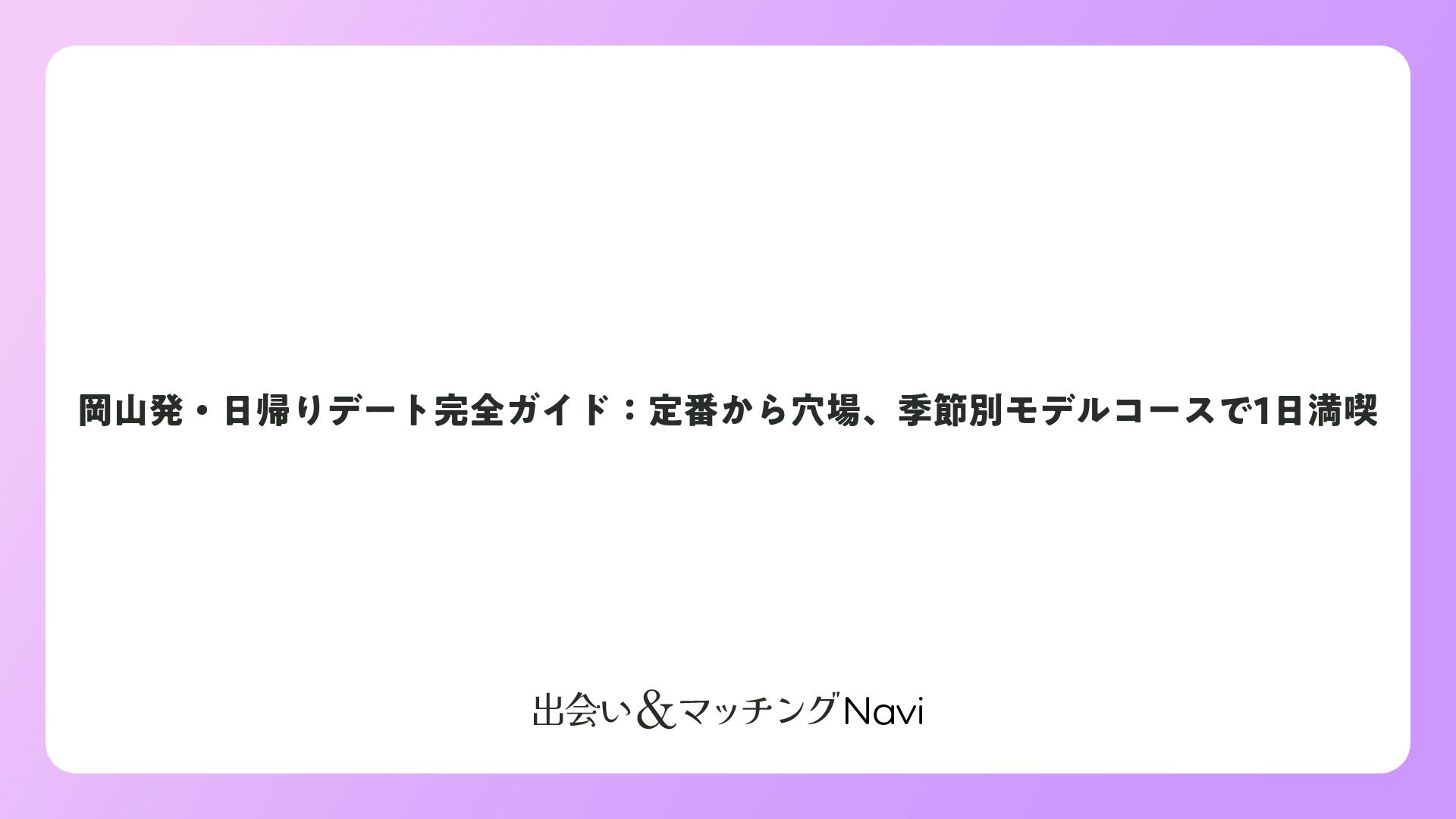 岡山発・日帰りデート完全ガイド:定番から穴場、季節別モデルコースで1日満喫をまとめました