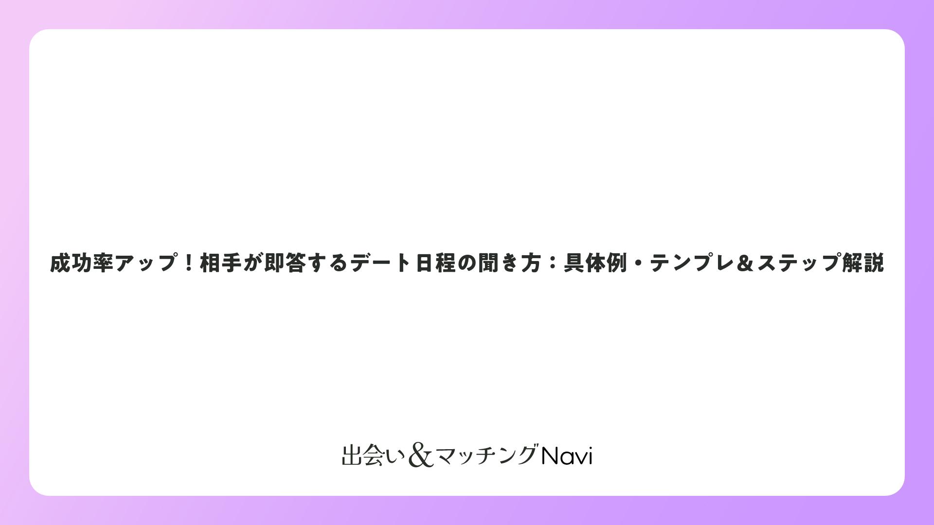 成功率アップ!相手が即答するデート日程の聞き方:具体例・テンプレ&ステップ解説をまとめました
